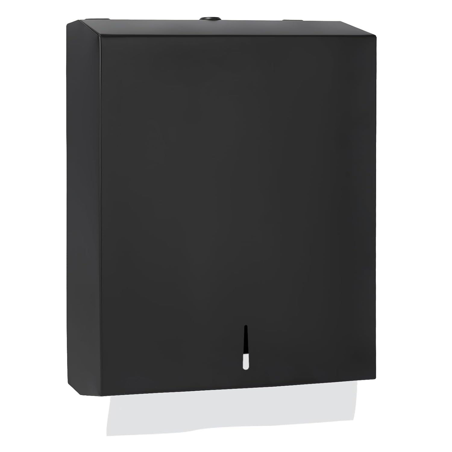 Paper Towel Dispenser Wall Mount, Matte Black Stainless Steel Commercial Paper Towel Holder with Lock, Large Capacity 400 C Fold/525 Multifold Towels
