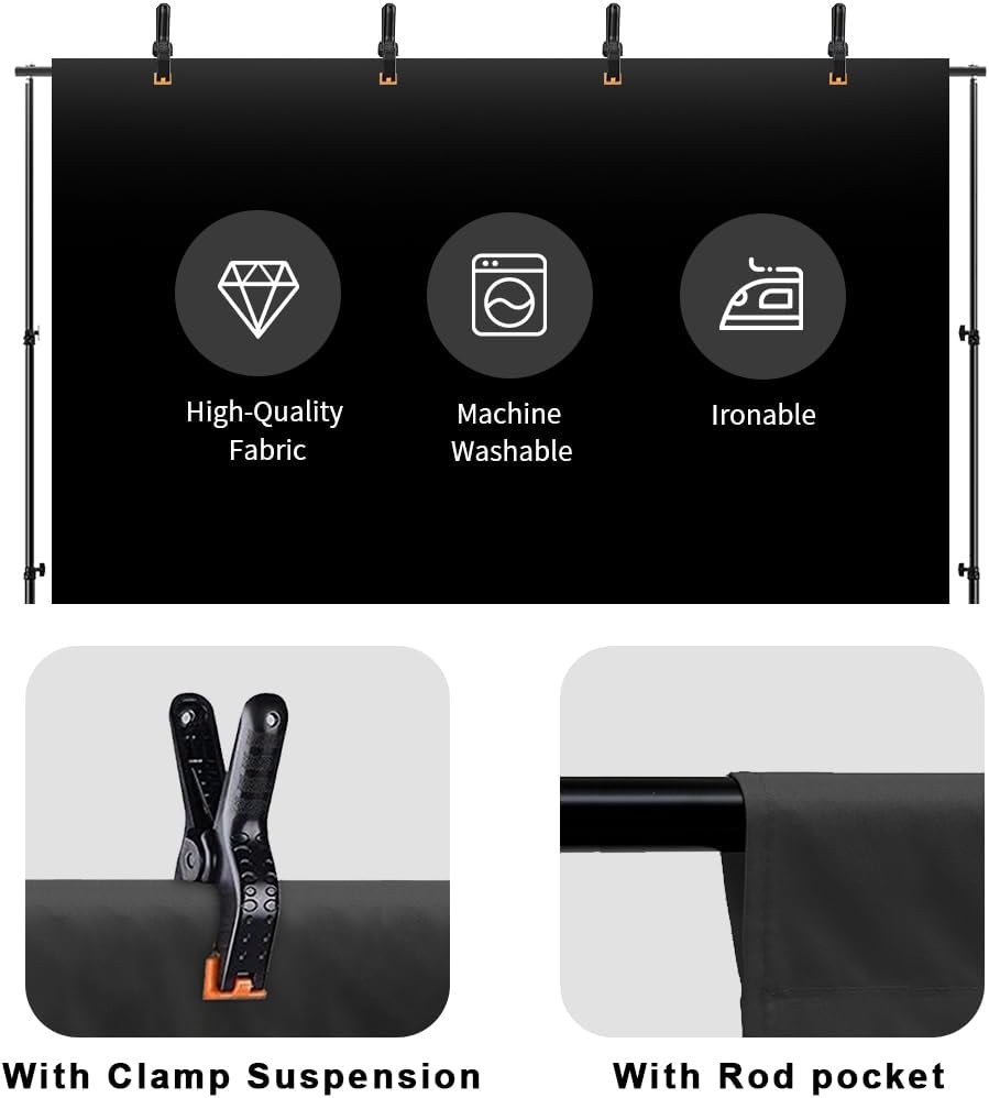 - 【PACKAGE INCLUD & WARRANTY】1pc 10x12ft black backdrop in package; Backdrop stand or Spring Clamp NOT included. 24-hour friendly customer service, 12 months after-sales quality assurance, please kindly contact us if any question.
