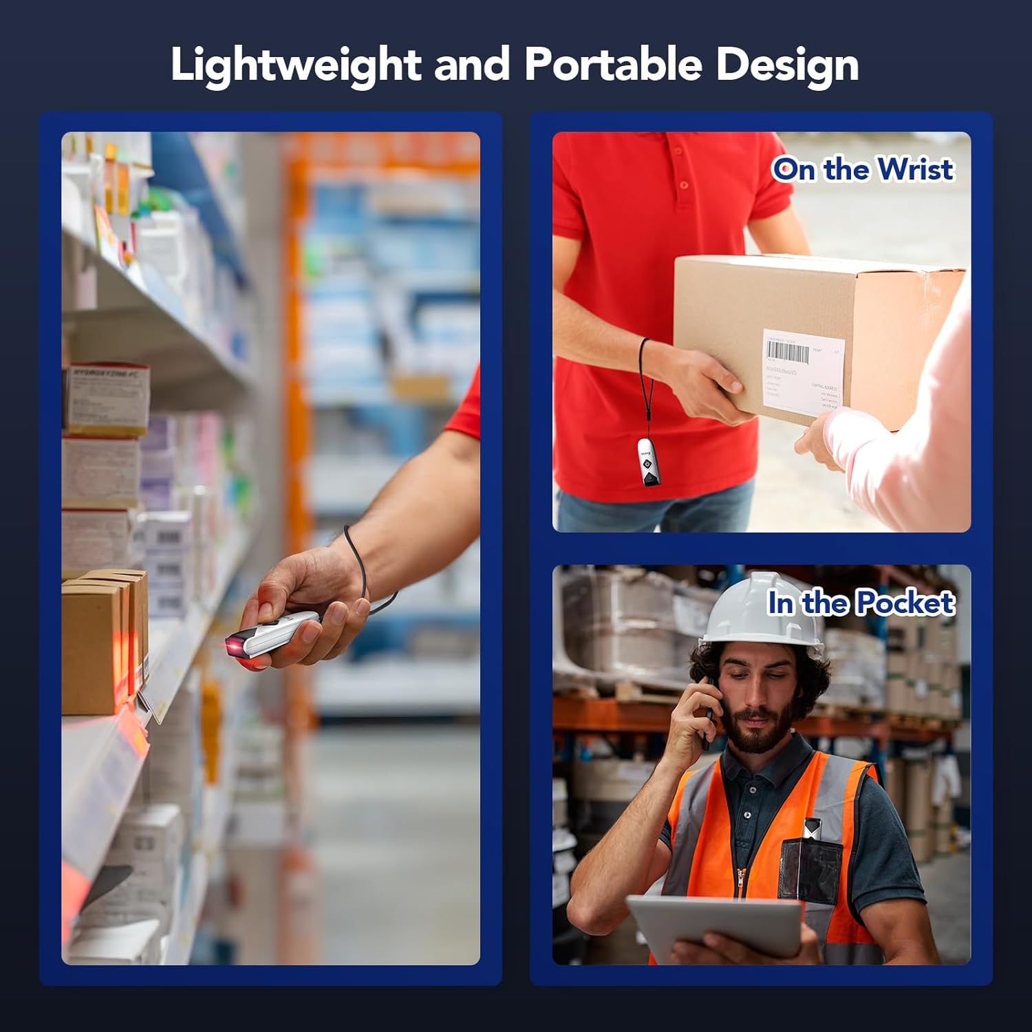 - Mini 2D Barcode Scanner: Ultra Mini Size: 3.5*1.18*0.78 inch, Ultra Lightweight: 1.5 oz. Portable and pocket size makes the wireless barcode scanner perfect for on-the-go and long-term scanning. Suitable for inventory, warehouse, supermarket, library, bookstores, library, sales stores and more