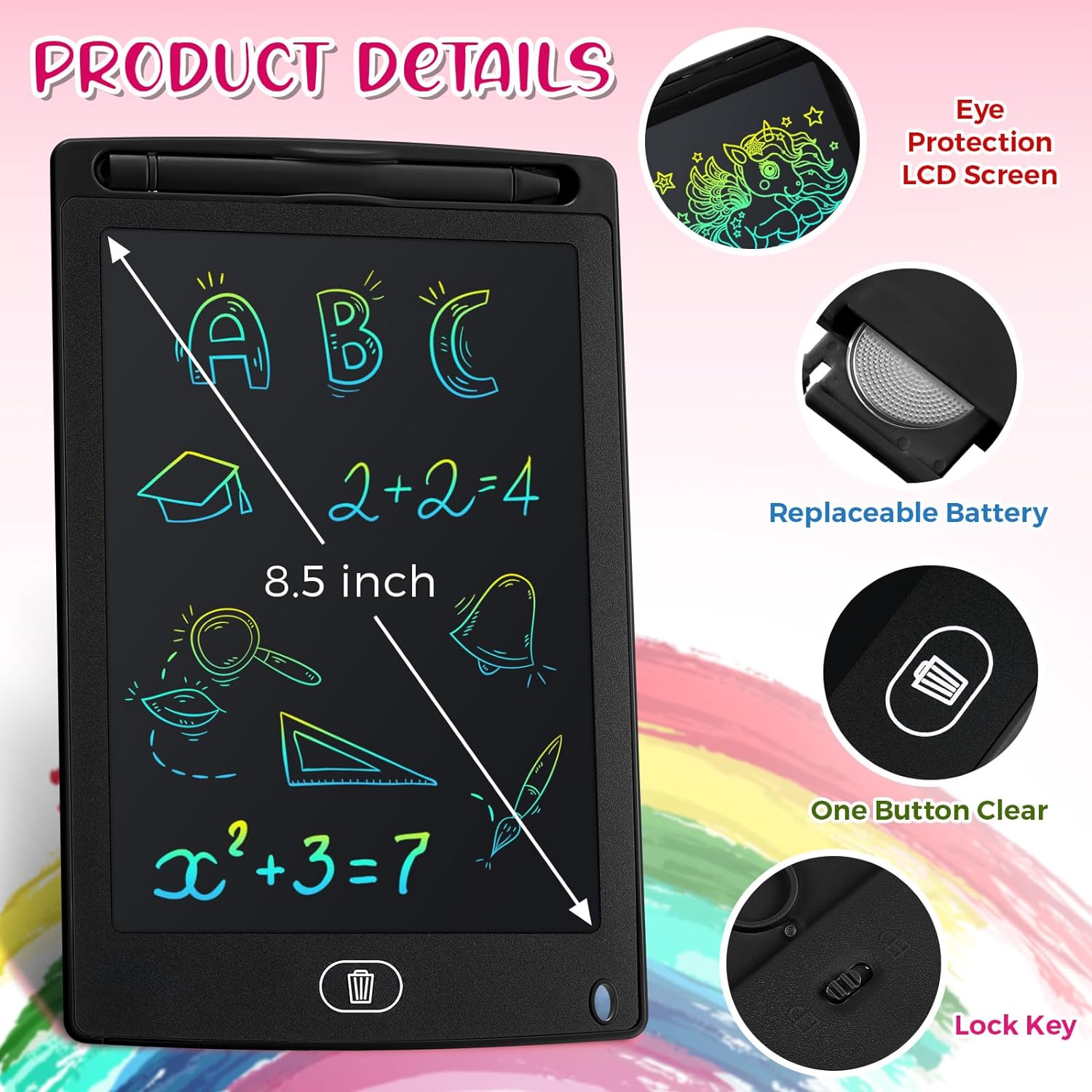 - Eye Protection LCD Screen: adopting eye protection LCD screen, no radiation and no glare, helpful for your child's eyesight, while providing a more comfortable painting experience; It is made of quality plastic material, providing enough space for graffiti and easy to watch, good for children imagination and creativity