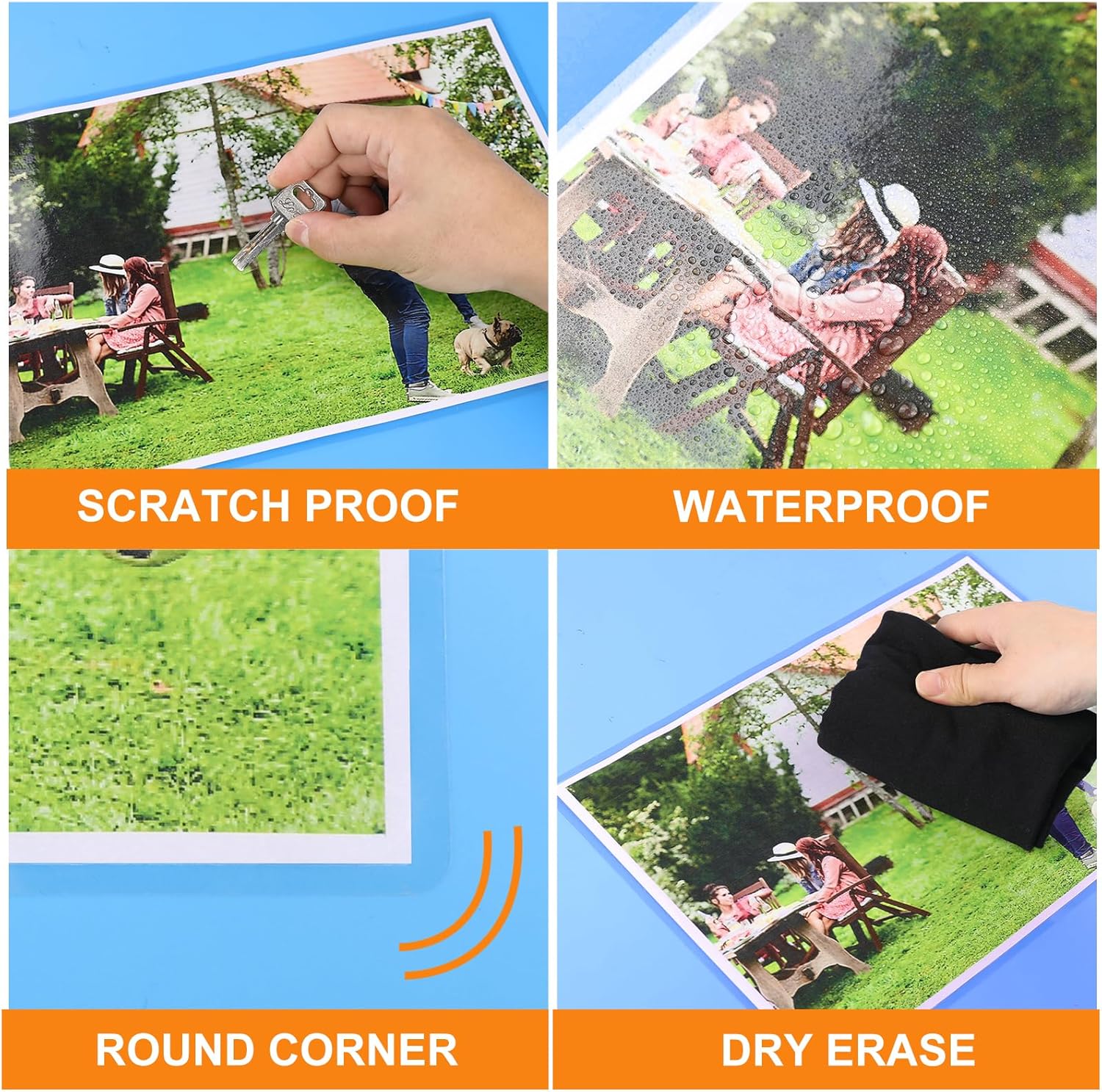 - Excellent Clarity:The laminating sheets only use high-quality adhesive for best transparency to ensure that the photos and documents are clearly visible let important information show through! Round corner design, safe to use