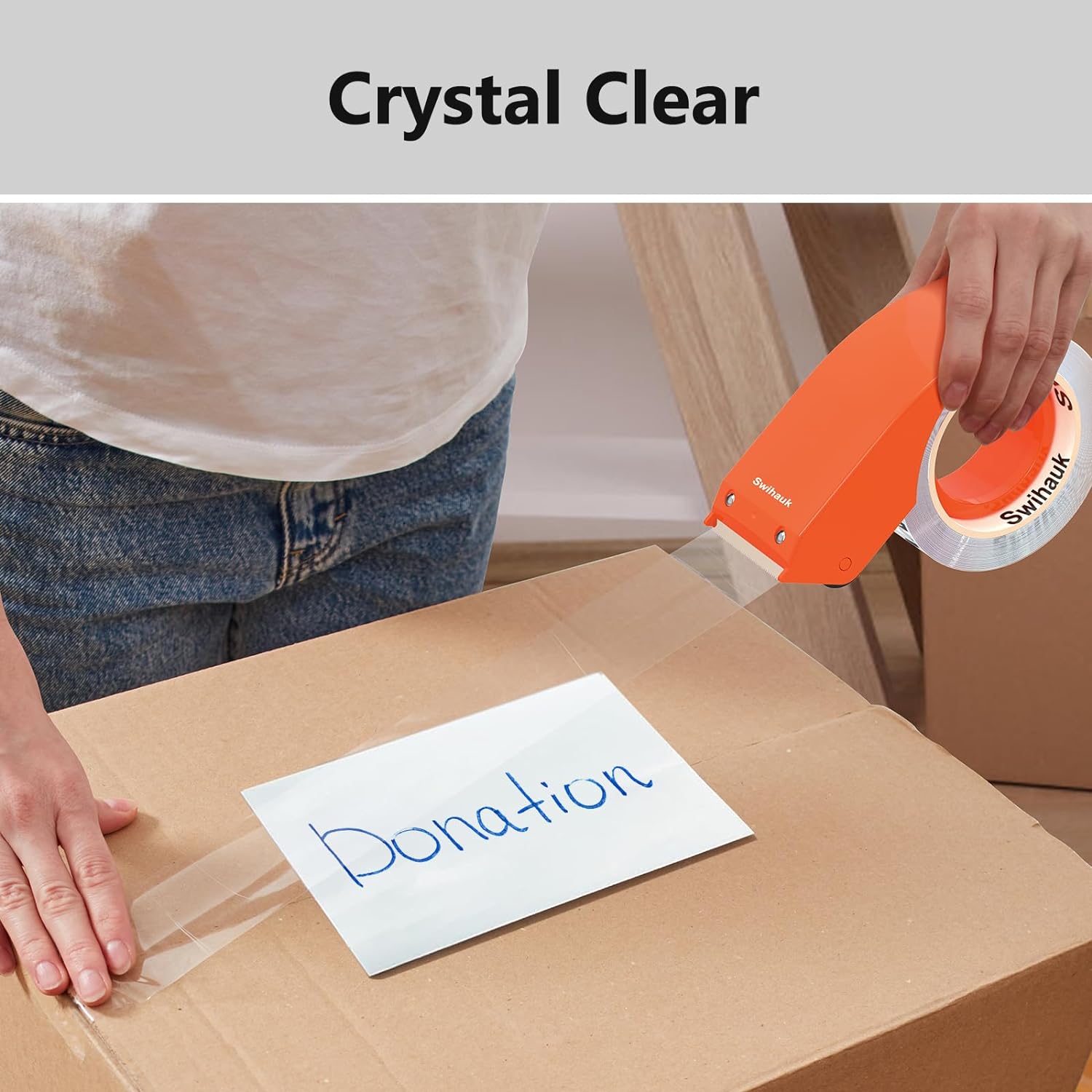 - 【Effortless Application】: Paired with a inovative dispenser which features a small rolling shaft to prevent the tape from falling back, Swihauk packaging tape with dispenser makes it a breeze to get your packing acctivities done quickly and efficiently.