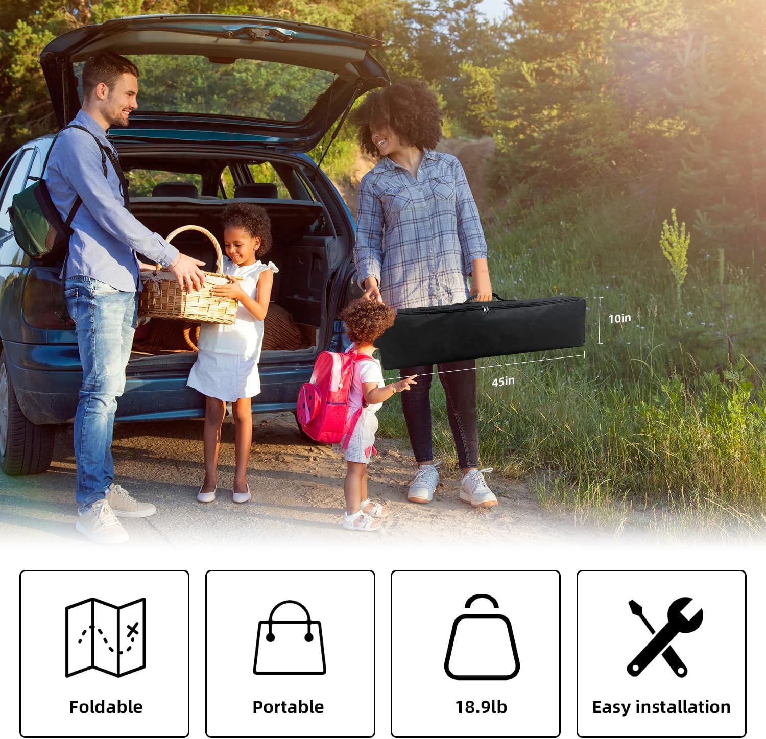 - 【Portable & Foldable】 Portable projector screen fits in the included carry bag and at only 18.9 pounds. It is small in size and light in weight, and can be easily placed in the trunk of the car, bringing a theater-like experience to any event. Enables usage in outdoors or indoors, any venues, any entertainments: home, school, office, camping, conferences, weddings, parties, movies, TV shows, video games.
