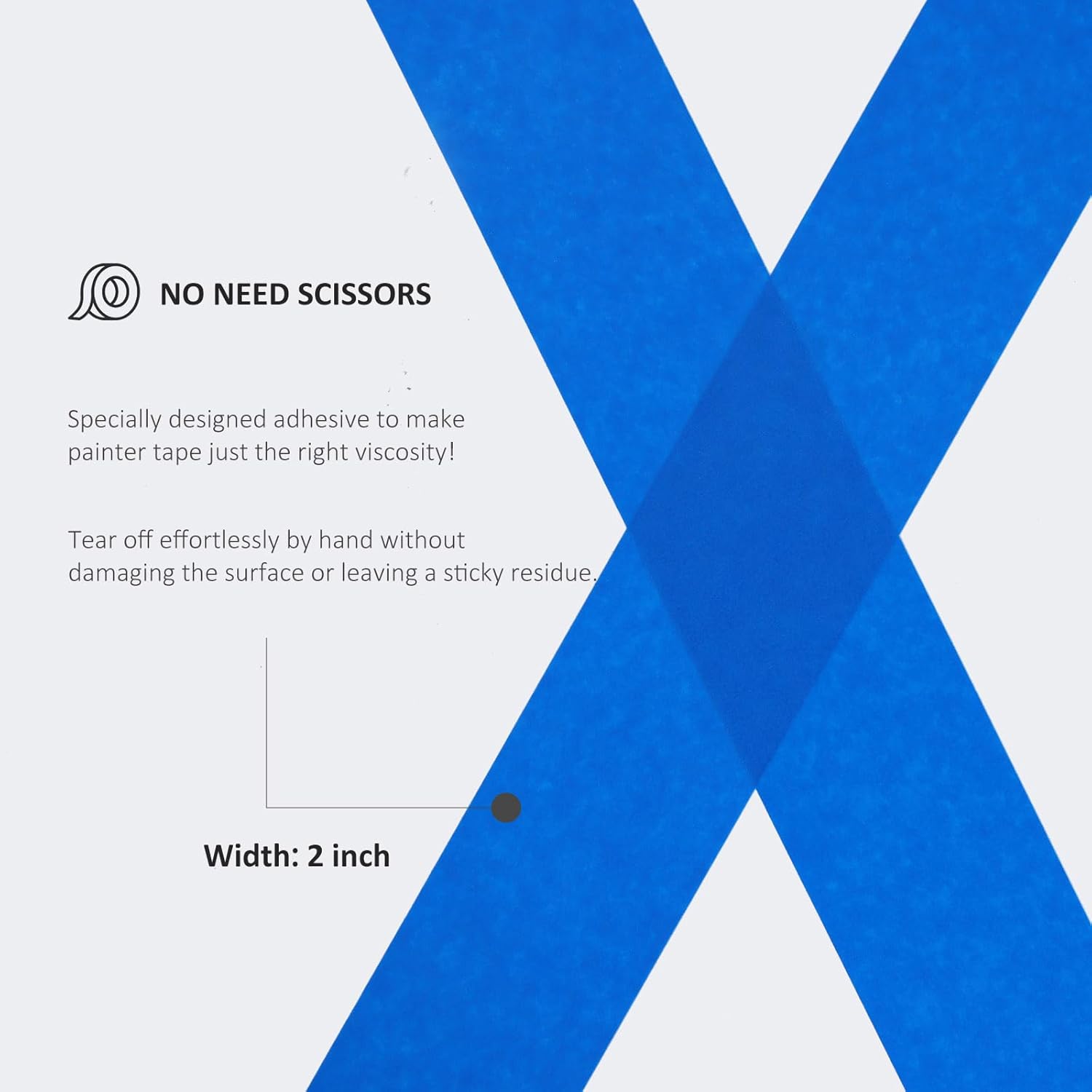 - No Need Scissors: Specially designed adhesive to make painters tape just the right viscosity! Tear off effortlessly by hand without damaging the surface or leaving a sticky residue. Please note that the color of this product is dark blue, and normal pen handwriting is not so clear. We recommend that you use marker pens if need to mark something.