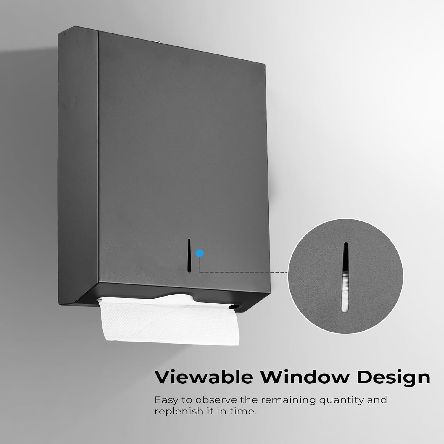 - š Easy-To-Use Design: A visible window on the front allows for timely refilling of paper towels. The locking design prevents damage as well as dust from getting inside the commercial paper towel dispenser. No need to touch to keep it clean.