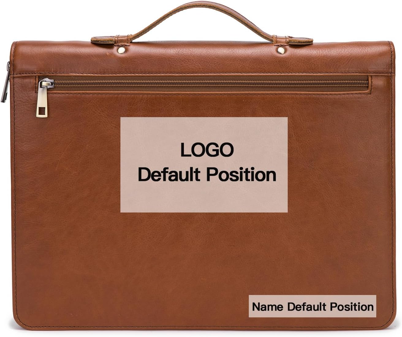 - Personalized Leather Portfolio: You can customize your name, which defaults to the lower right corner, or logo, which defaults to the middle. Simply choose your customization option and input the name or logo. If you have additional customization requirements, such as left-handed people, please feel free to contact us via email after placing an order. We will do our best to assist you. Please note that the image logo is usually debossed and cannot be customized in color.