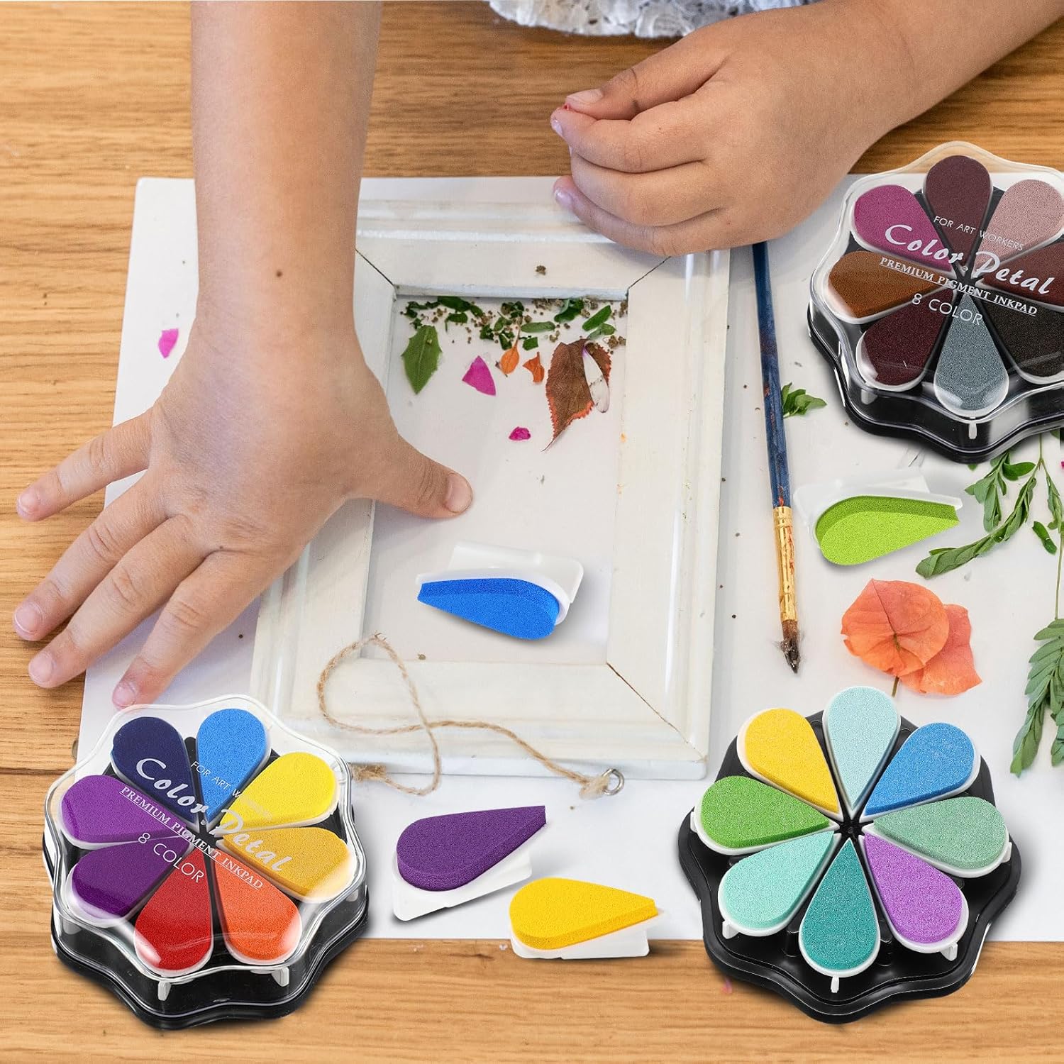 - Wide Range of Applications: immerse yourself in the myriad hues of creativity with our petal stamp ink pad set; These rainbow rubber stamps will give you wide scope for applications, which can be widely applied for ordinary paper, non coated paper and other absorbent paper, wood, clay, fabric, etc.; Also ideal for scrapbooking or card making, posters, notepads, craft projects, journals and many different kinds of stamps