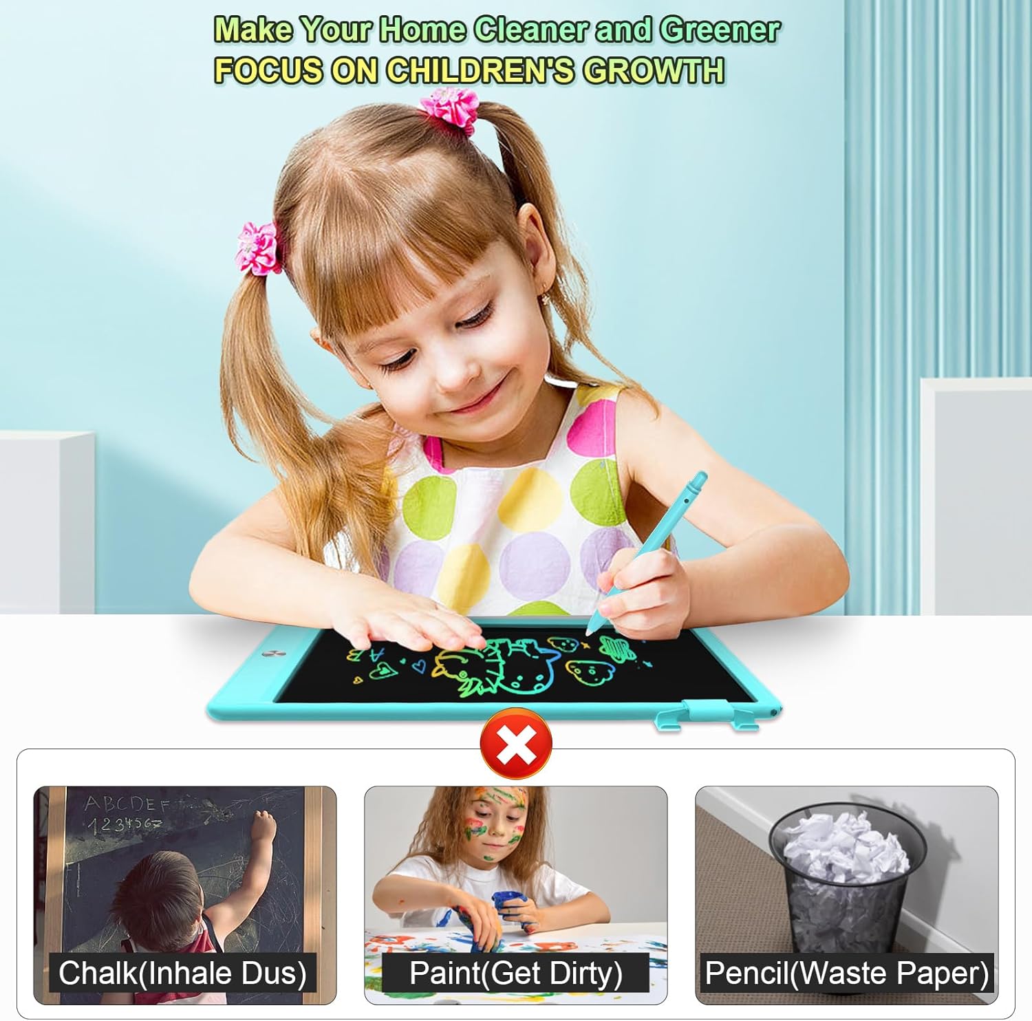 - 👀 【Eye Protection & Safe & Durable】Drawing tablet kids, Anti-reflective Technology, no back light. Erasable drawing board made with safe & non-toxic & durable material, allow for writing with a pen or fingertips, can write about 100,000 times.