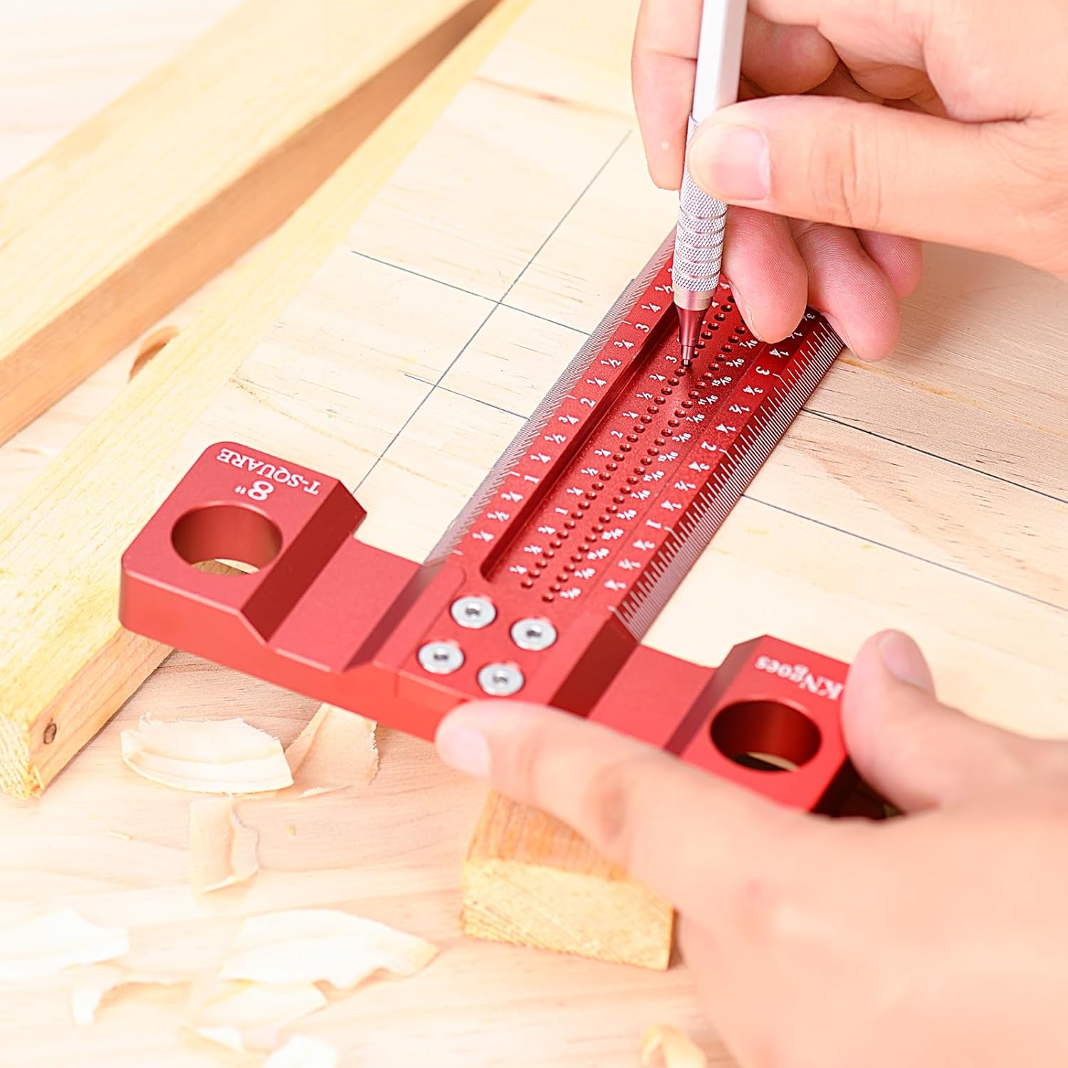 - 【Precise Marking】On the two outer edges of the blade, there are laser engraved lines every 1/32in , and the blade itself has precisely spaced 1.3mm holes drilled every 1/16in. Stick a pencil in the hole, slide it along your workpiece and a perfectly spaced line accurately following the stock edge.