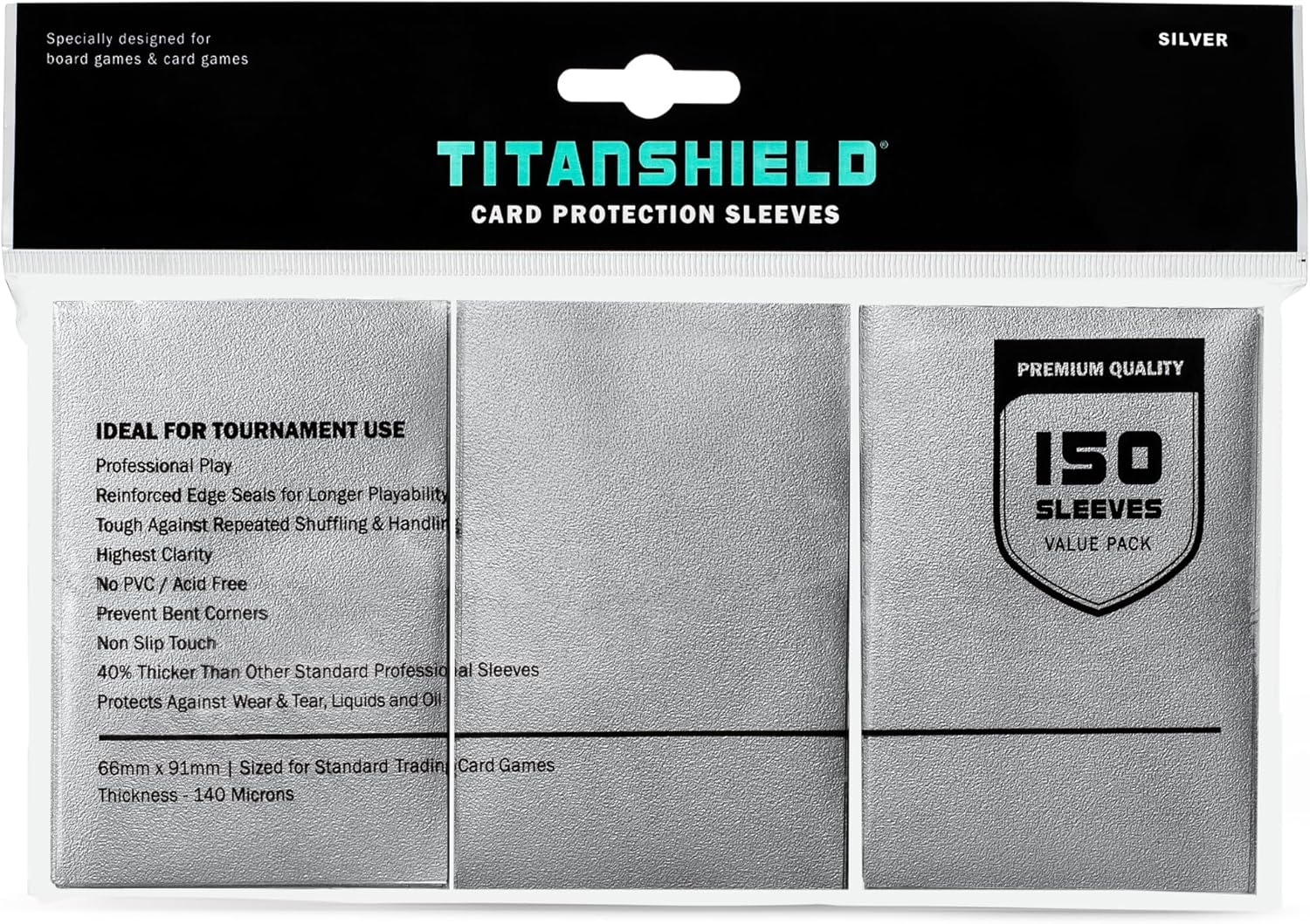 TitanShield (150 Silver Sleeves) Compatible with MTG Magic The Gathering, Lorcana, Board Games and Trading Cards 2.5" x 3.5" 66x91mm