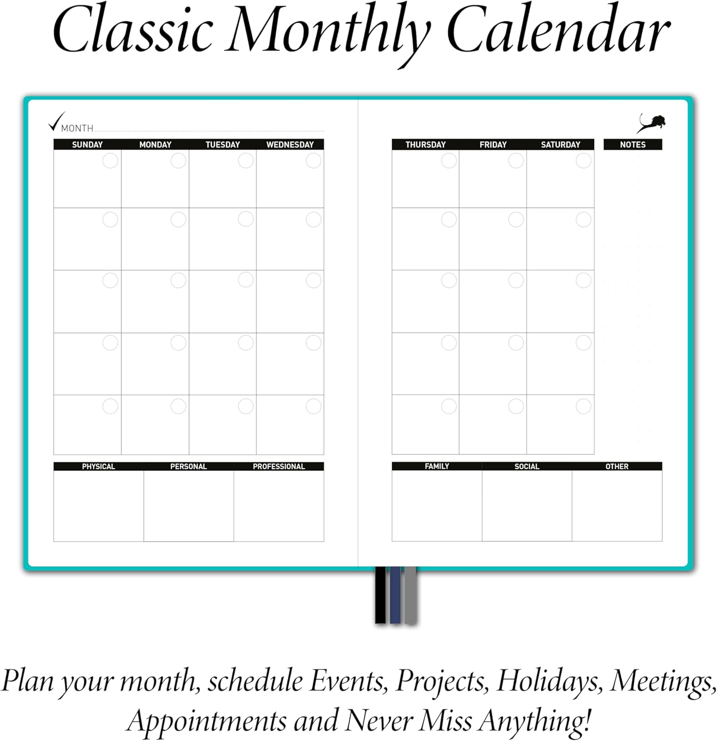 Daily Planner, Calendar and Gratitude Journal to Improve Time-Management, Productivity & Happiness | Vegan Leather Hardcover Organizer with Blank Dates, Undated 6 Months 24 Hour Agenda