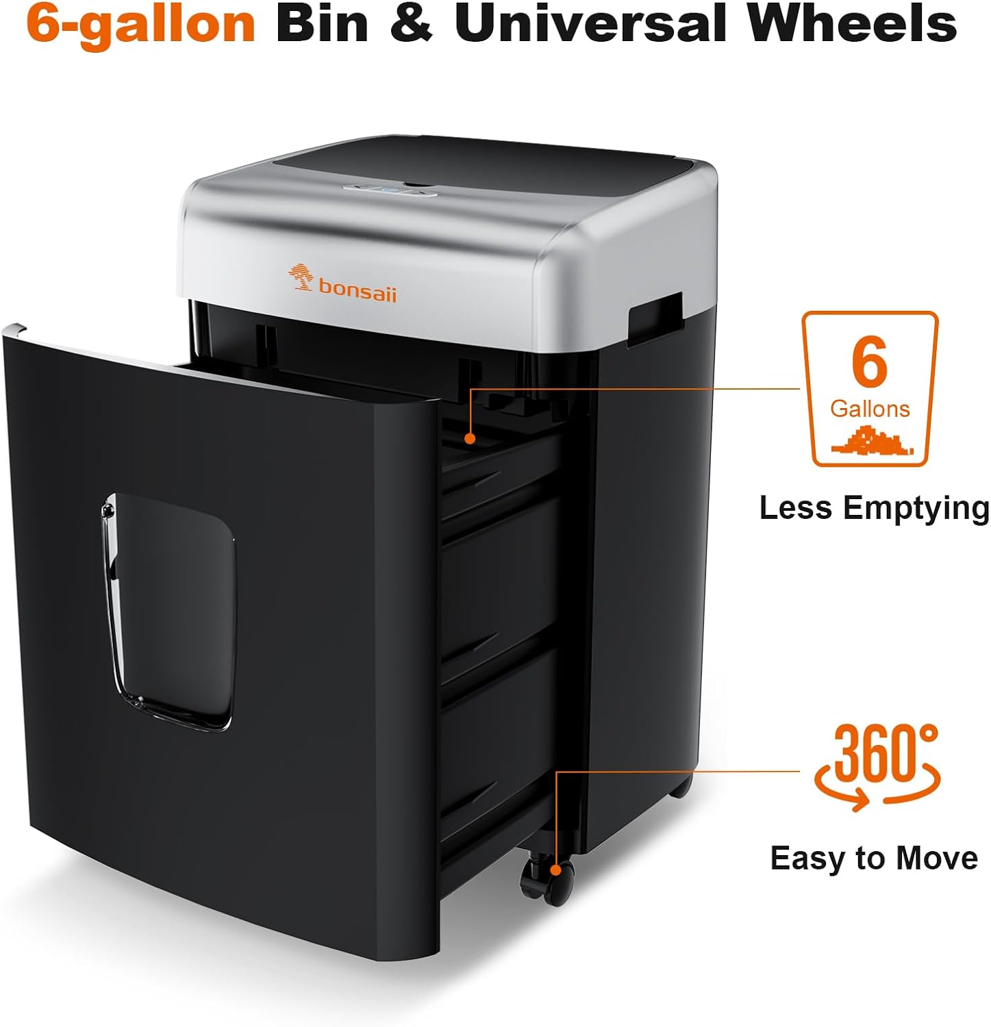 Bonsaii Paper Shredder for Office, 110-Sheet Autofeed Heavy Duty Shredder for Home Office Use, 30 Minutes/Micro Cut/P-4 High Security Level/6 Gallon Large Bin