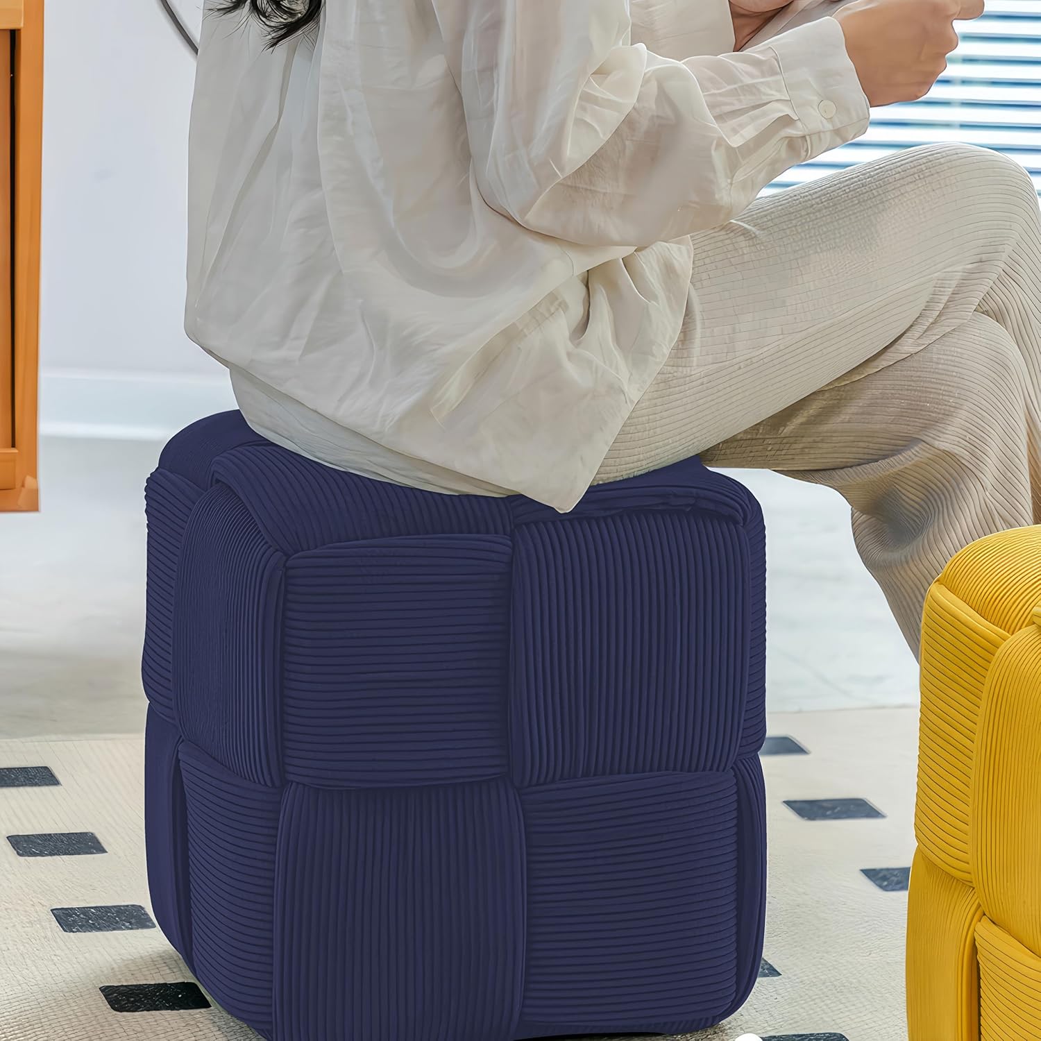 Ottoman Foot Rest Soft and Comfortable Ottoman Square Corduroy Woven Design Sofa Stool (Blue)