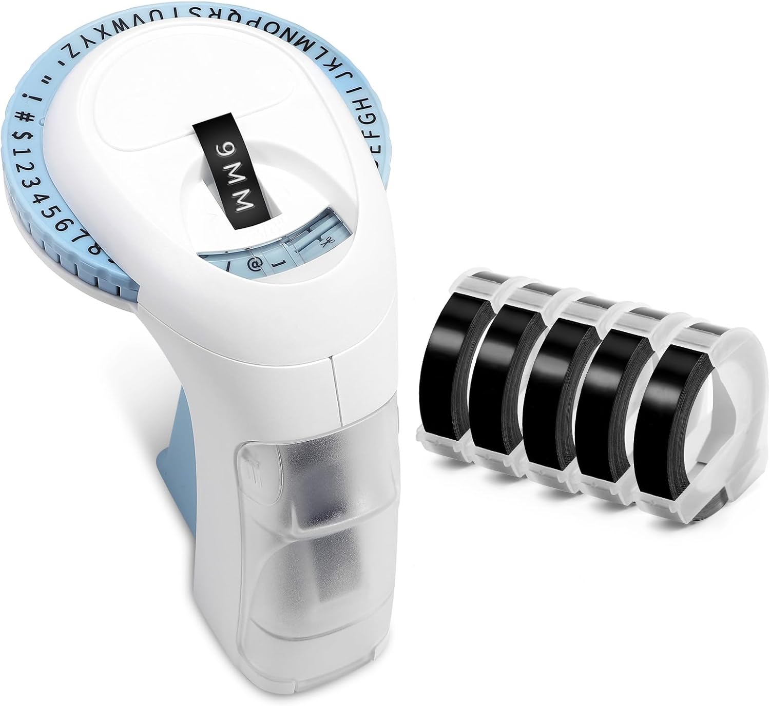 - 【What's in the package】The handheld Blue printer comes with a comprehensive set of 5rolls of 9mm (3/8) labeling tape in black. This ample supply of tape ensures you have enough tape for all your labeling needs