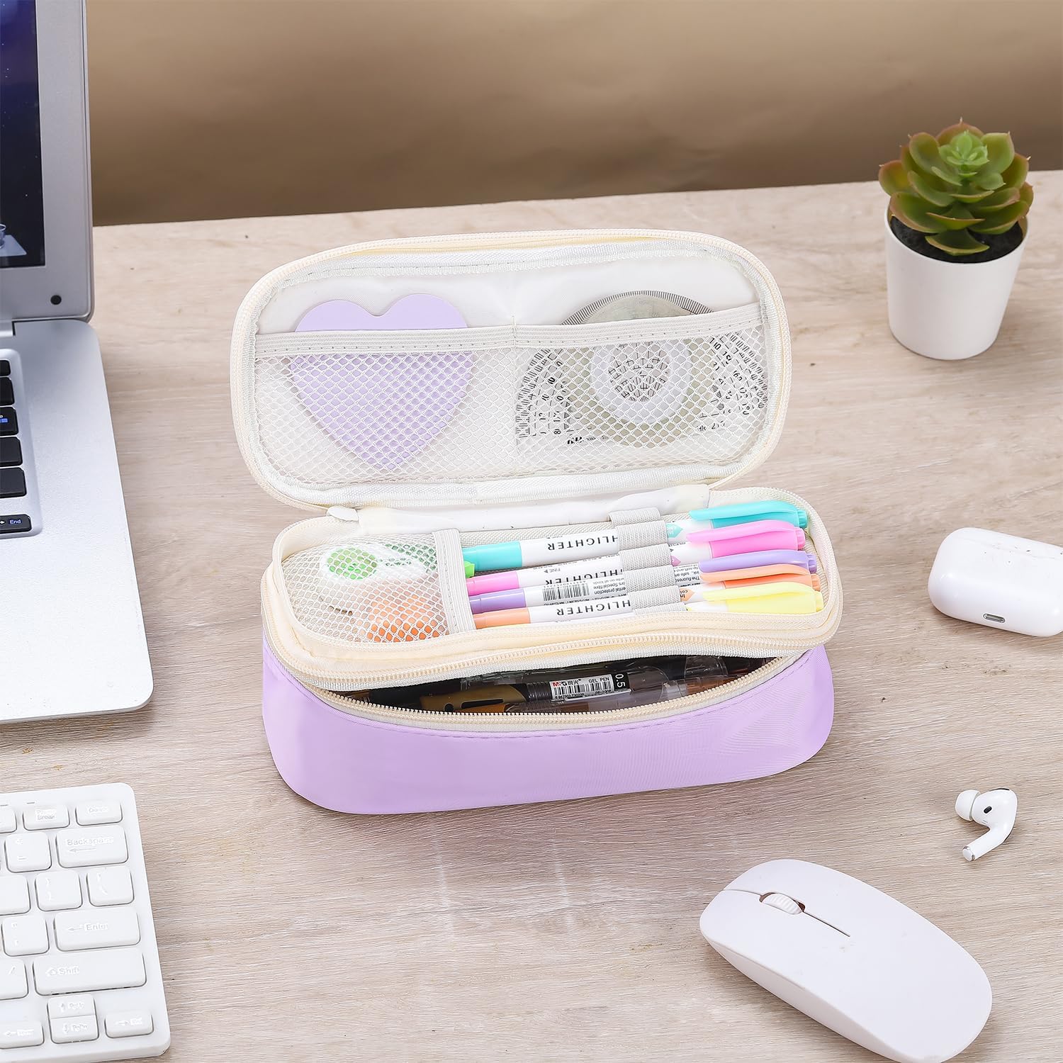 Pencil Case Aesthetic Pencil Bag with Zipper Pencil Pouch Big for Girls Kids Teens Adults Stationery Pencil Case Organizer for School Purple