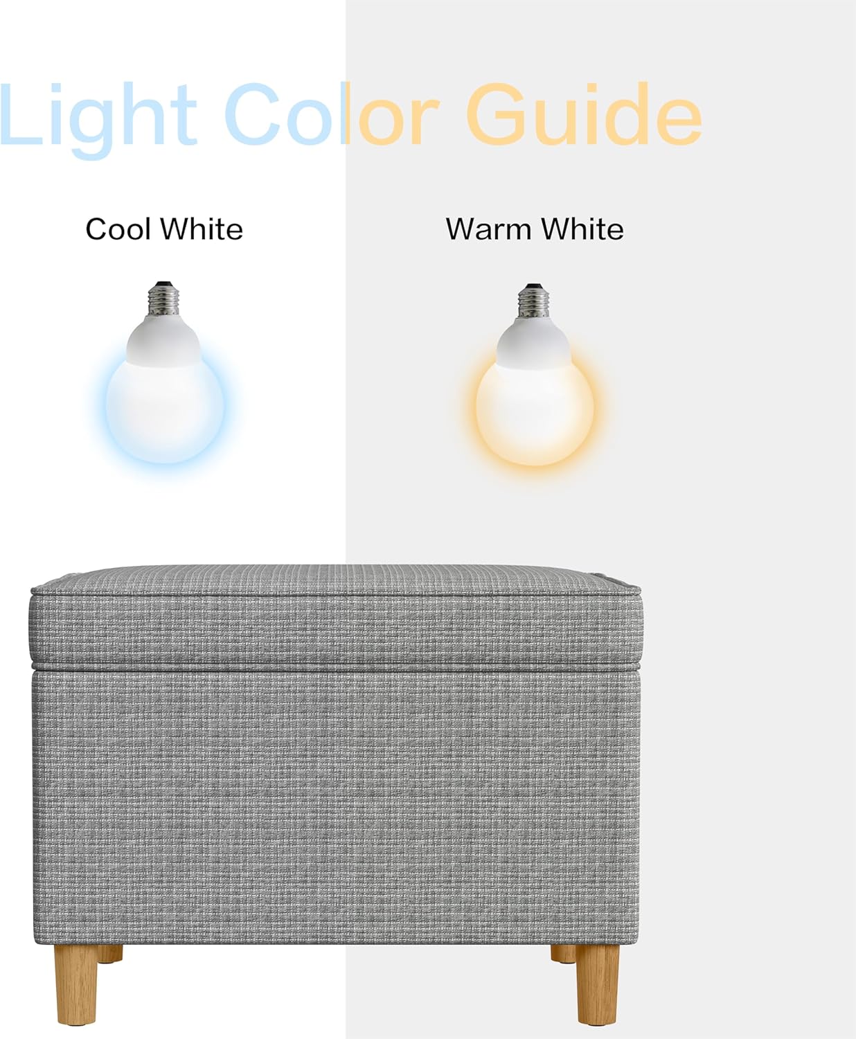- STORAGE OTTOMAN: Our Accent Piece Fabric Ottoman features a hinged lid and with its versatility can be used as a Foot Stool Ottoman or Vanity Seat | Perfectly completed with tapered wood legs in a natural finish along with stitching details for added interest