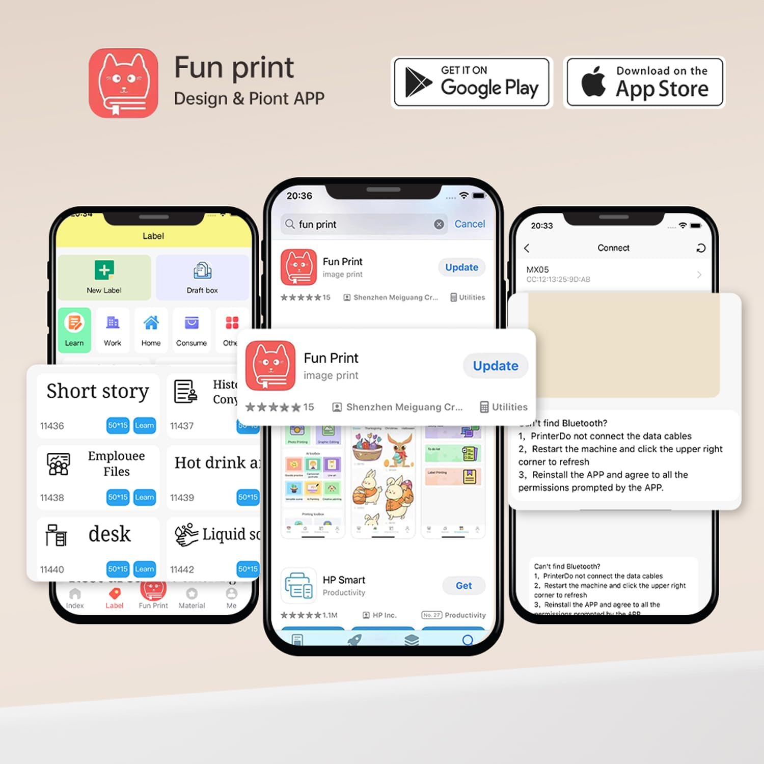 - [Customized Label Maker Machine]Cabaro thermal sticker printer comes with 3 rolls of 50mm-53mm thermal sticker paper, you can cut the printouts into labels of any shape and size just with a scissor so that all labeling needs can be covered at lower cost.
