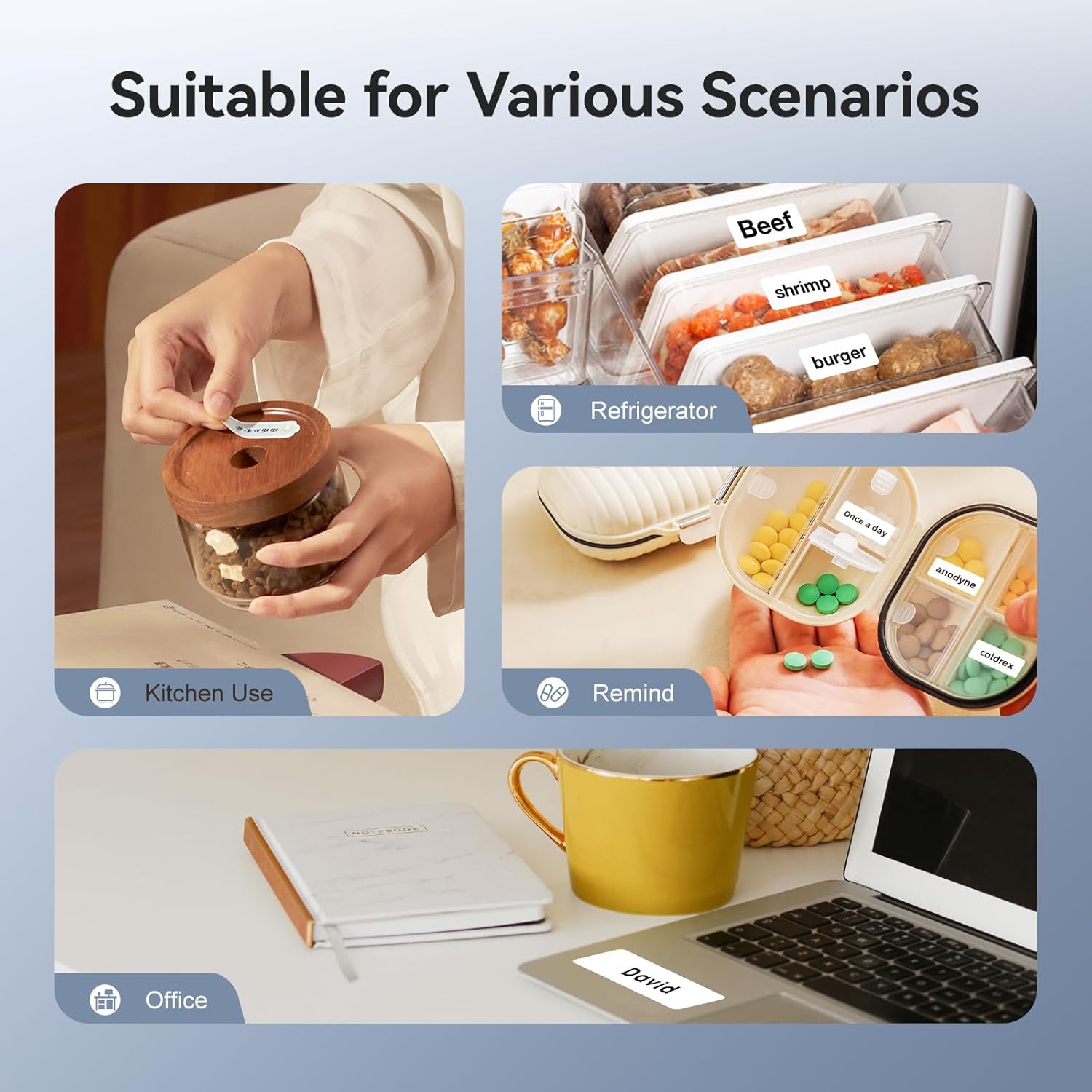- 【Wide Application】- The label maker machine with tapes is used widely in organizing home/small business supplies/swap meets/garage/yard sales, school stuffs,and office. NIIMBOT D11 label maker is also a nice choice for kids, friends, girlfriends and mothers as a present for valentines day, birthday, anniversary, housewarming, wedding, back to school, Thanksgiving and Christmas.
