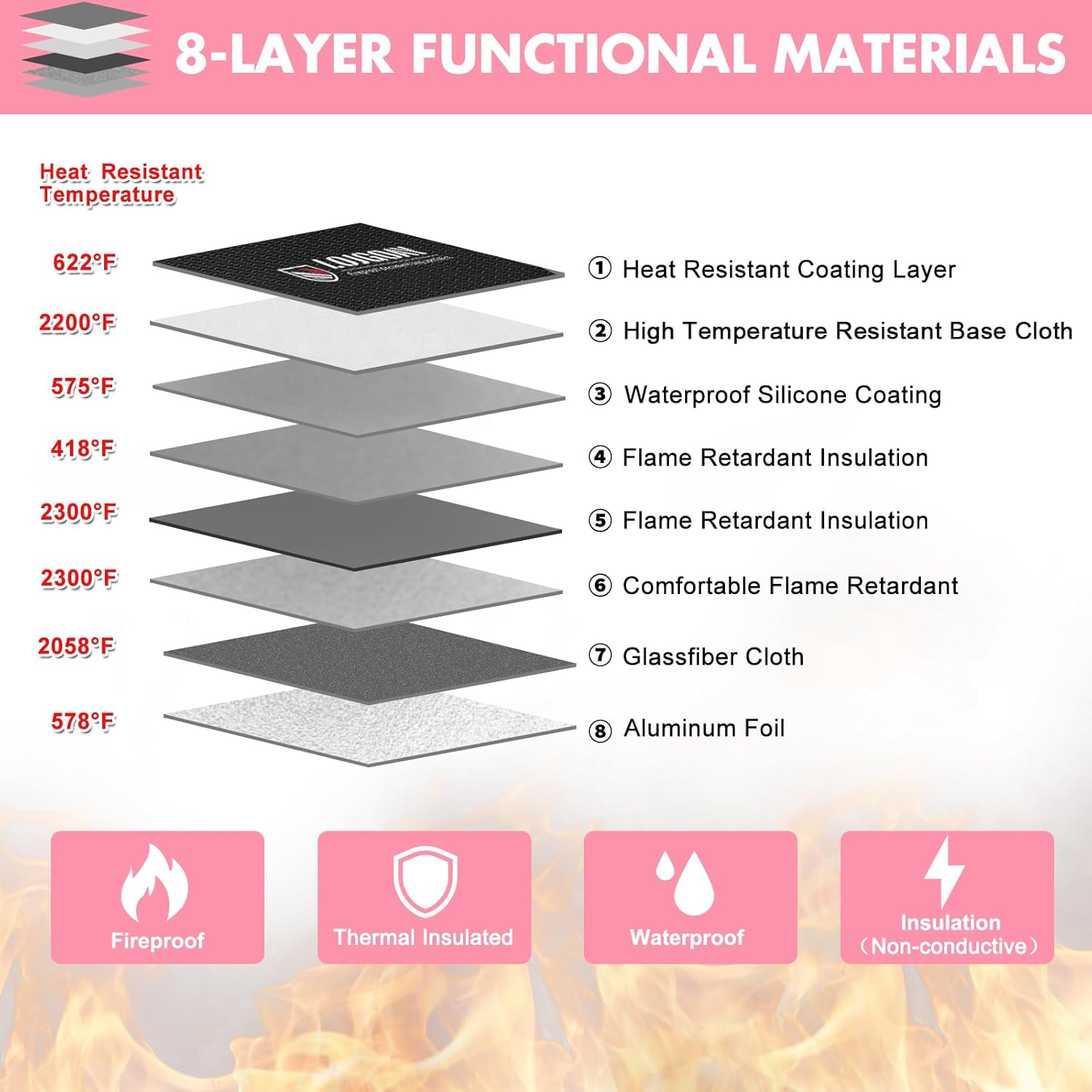 - 🔥UNIQUE NESTED DESIGN : Thanks to the 8 layers of functional materials, fireproof waterproof document bags can withstand temperatures up to 5200°F, and the unique nested design allows fire bag has independent space between the layers of materials, so that heat transfer from the different non-direct contact media, constantly weakening, blocking heat transfer. fireproof bag give you enough time to save your valuables from fire