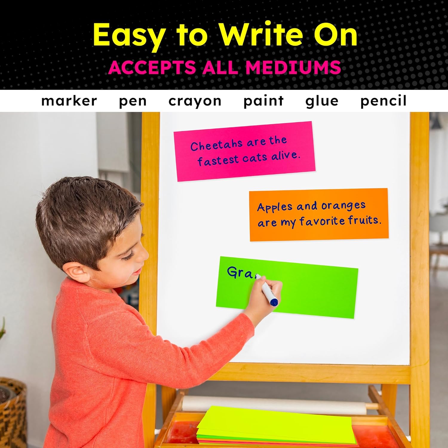- BRIGHT EYE-CATCHING NEON COLORS - Need bright colors that grab attention instantly? This neon poster board comes in 5 fluorescent shades: Red, Pink, Orange, Yellow, and Green. Choose from our single-color or assorted poster board bulk packs for vivid signs and designs that stand out.