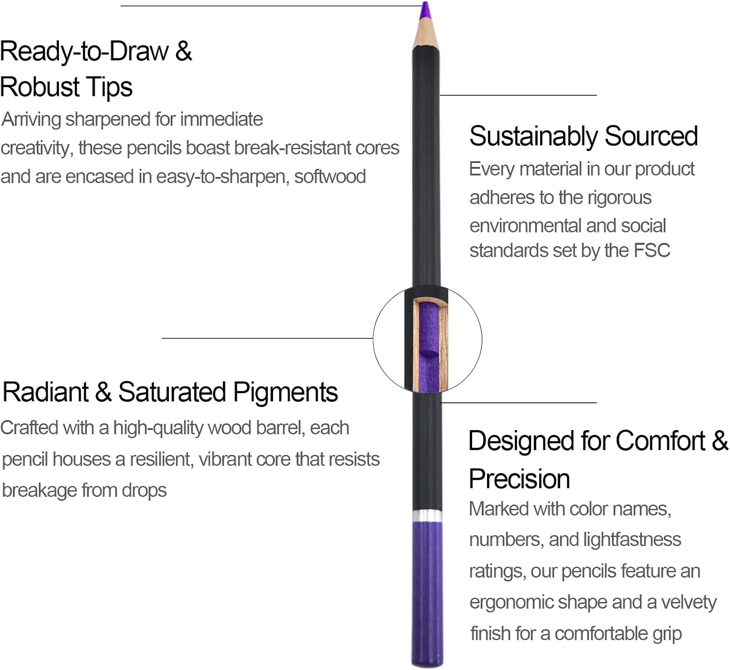 - Enhance Art with Our Comprehensive Colored Pencil Set: Dive into a world of color and creativity with our specially designed colored pencil collection. Perfect for artists at every level, these coloring pencils allow for intricate blending, layering, and creating dramatic effects with unparalleled ease. As an essential tool in any art colored pencils set, these artist pencils are crafted to enhance the work of those who love drawing pencils for sketching, providing a rich palette for endeavors.