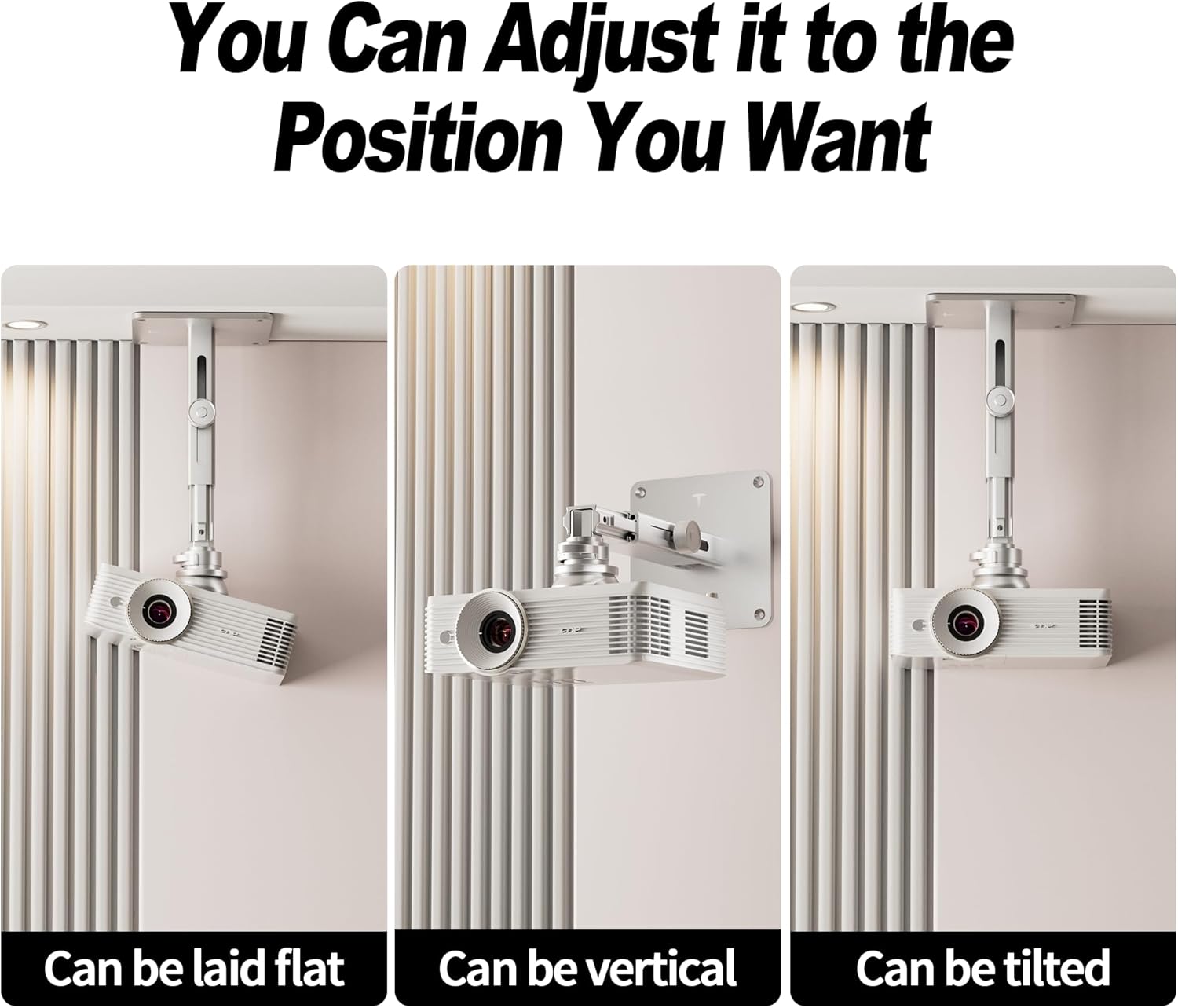 - 【Adjstable Height & Easy Installation】The maximum length of the projector stand is 13.5 inches / 34.3 cm, and the retractable height is from 8.94 -13.5 inches. It offers flexible mounting options, allowing you to choose ceiling or wall mounting according to your preference and space requirements, simply drill holes in a load-bearing wall or ceiling to complete the installation.