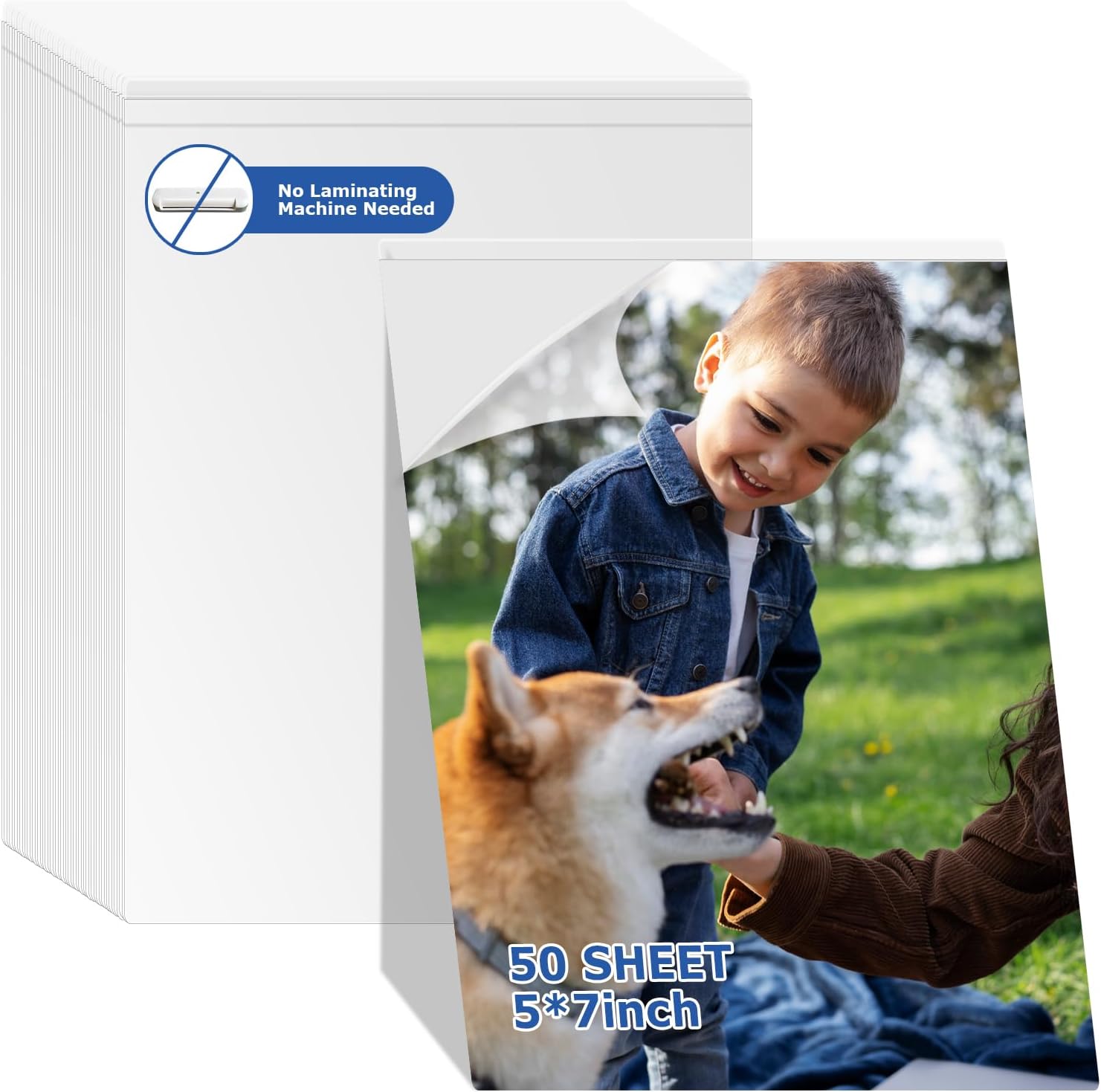 DLUGOPIS 50 Sheets Self Seal Laminating Pouches 5x7 Self Adhesive Laminating Sheet No Heat No Laminating Machine Needed for Photos Index Cards