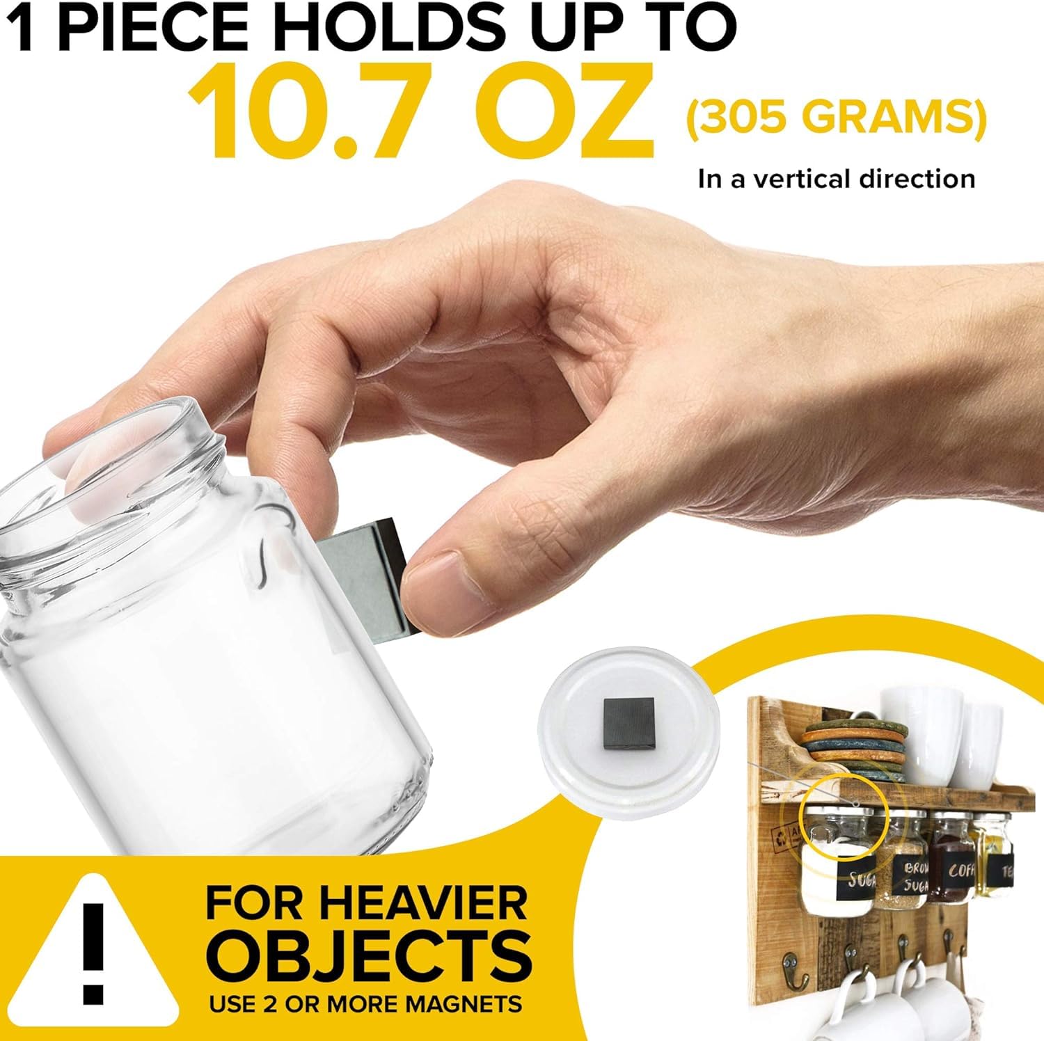 - EASY TO INSTALL sticky magnets. The adhesive on one side, flat ceramic magnet on the other - sticks great on plastic, metal, concrete, tiles, and more