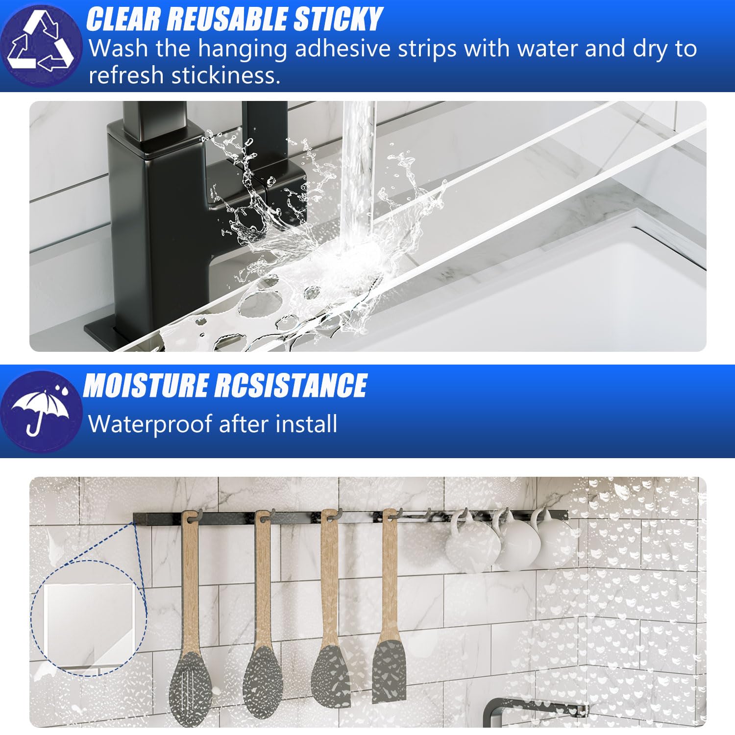 - ćRemovable&No ResiduećThe removable adhesive strips leaves no sticky residue, Our thick adhesive tape works well on almost any smooth surface, such as walls, wood, ceramic, tile, glass, mirror, metal, plastic, marble, etc.