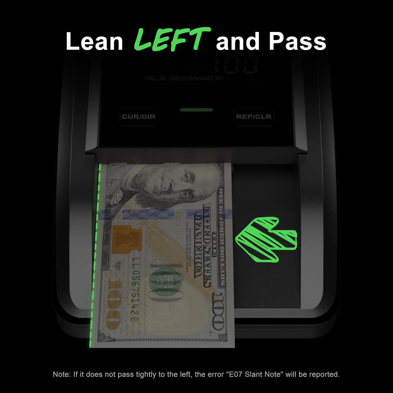 - 【Convenient and Fast】The counterfeit money detector support 4-way orientation feeding , any direction can be detected, just pass the banknote close to the left side of the machine, you can identify the authenticity of banknotes in 0.5 second.