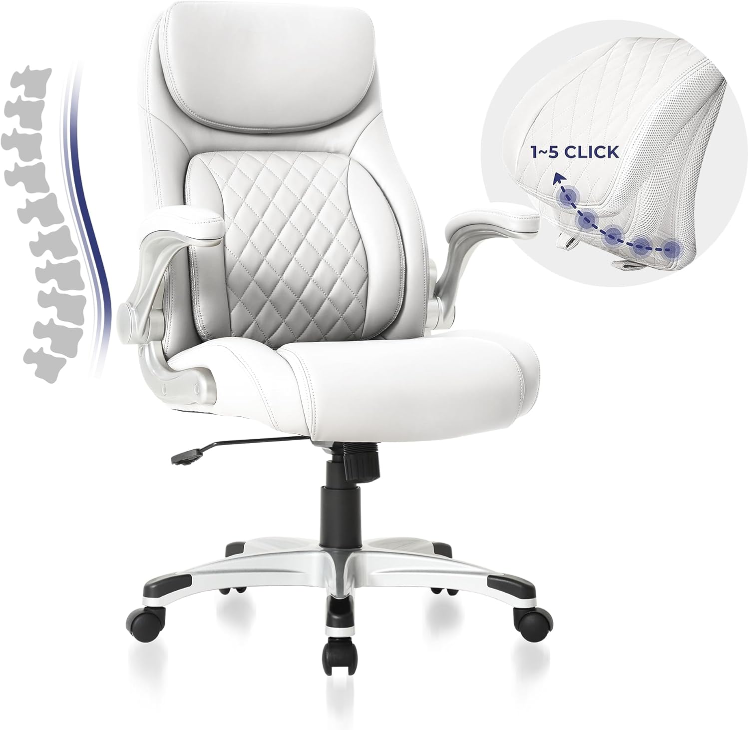 Nouhaus Ergonomic Office Chair Premium Microfiber Leather Adjustable Lumbar Support & Armrests, High Back Comfy Desk Gaming Chairs Executive Computer Swivel Chair Tilt Function(Posture,White)