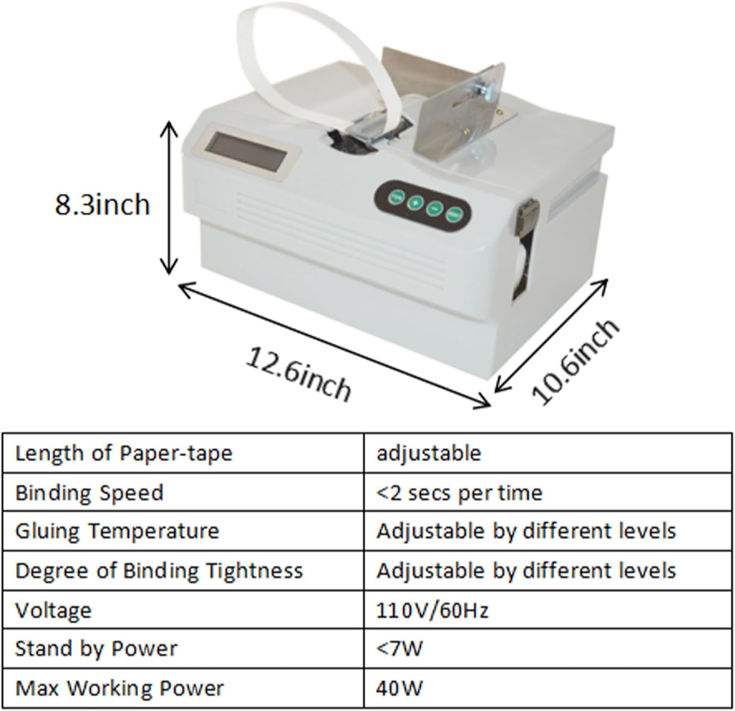 - √ [Small size] The banknote baling machine size is 12.6*10.6*8.3inches,it is lightweight and is easy to carry,fast binding speed,binding Speed<2 secs per time.