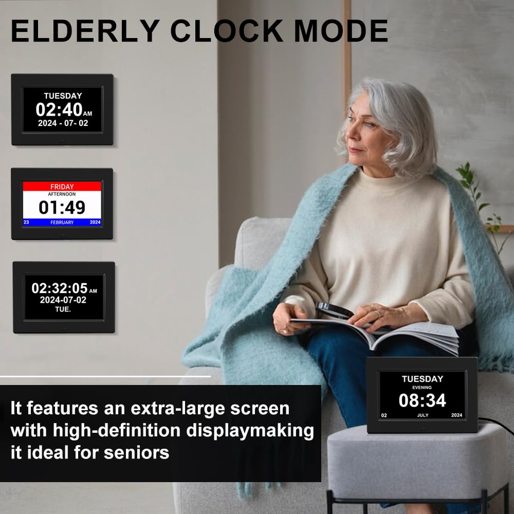 - Elderly-Friendly Design: With a large 7-inch IPS full-view HD screen, extra-large fonts, customizable colors, and voice time announcements, this clock caters to the needs of the elderly, ensuring clear readability and accessibility.