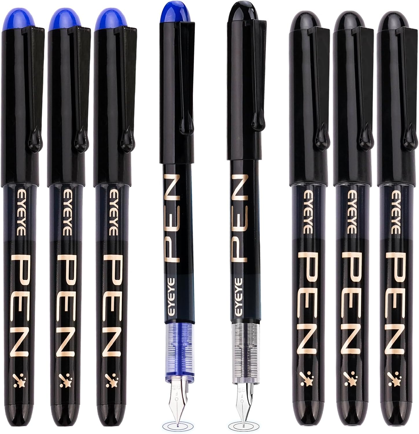EYEYE Disposable Fountain Pens Fine Point, 4 Black 4 Blue Fountain Pens or Writing, Stainless Steel Nib, Smooth Writing for Journaling, Drafting, Sketching, Doodling & Office Supplies