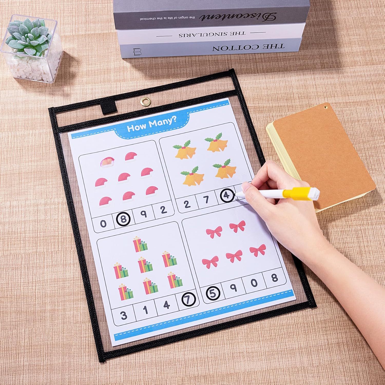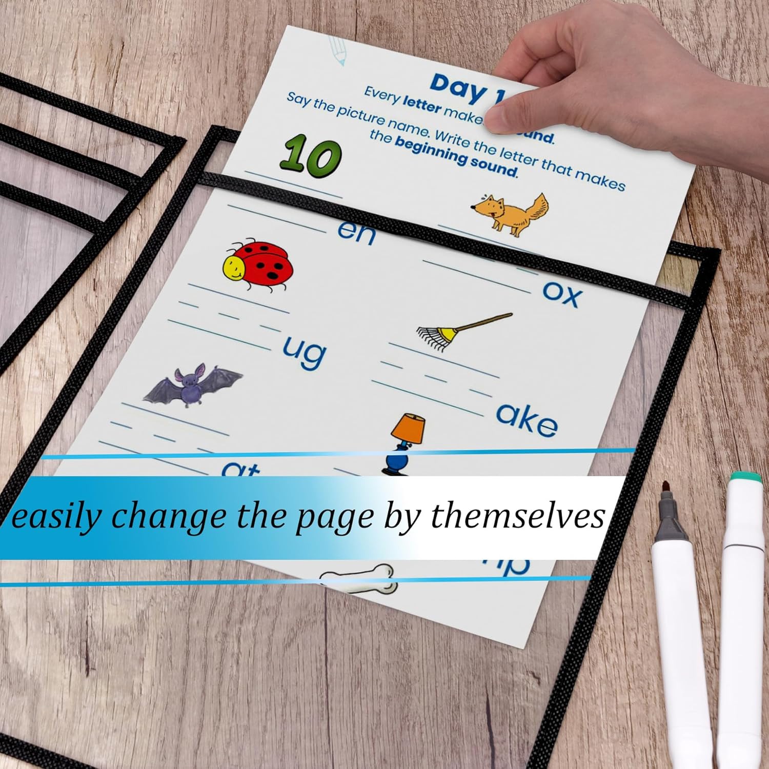 - Efficient Learning Aid: The clear PET surface supports single and double-sided worksheets. Write, wipe, and re-write with ease, making these pockets invaluable tools for interactive learning and content management