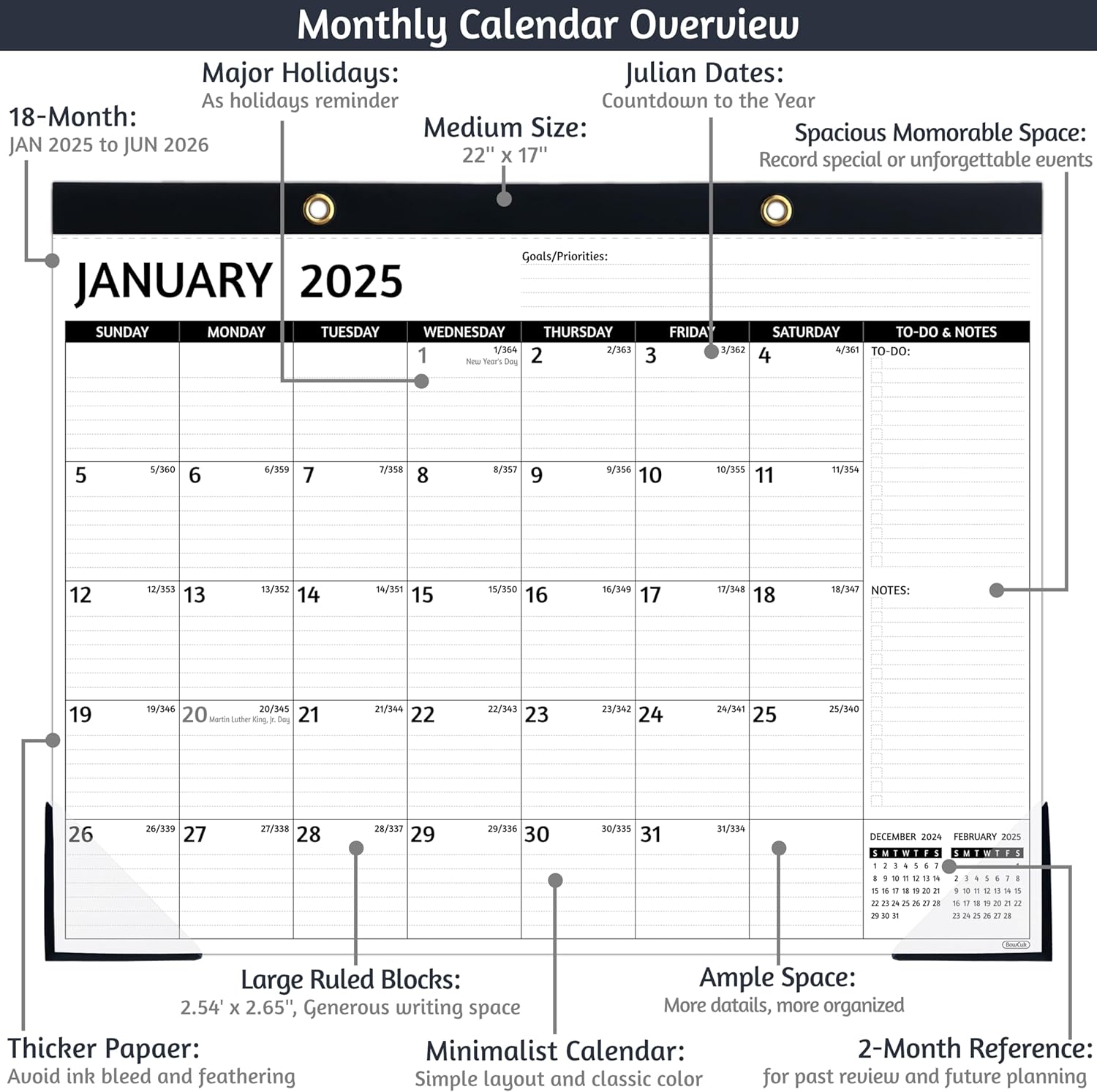 2025-2026 Desk Calendar ā Jan 2025 ā Jun 2026, 18 Monthly Calendar 2025-2026, Large Desk Calendar, 22'' x 17'', 2025 Desk/Wall Calendar with Desk Pad, To-do Lists, Ruled Blocks, Corner Protectors
