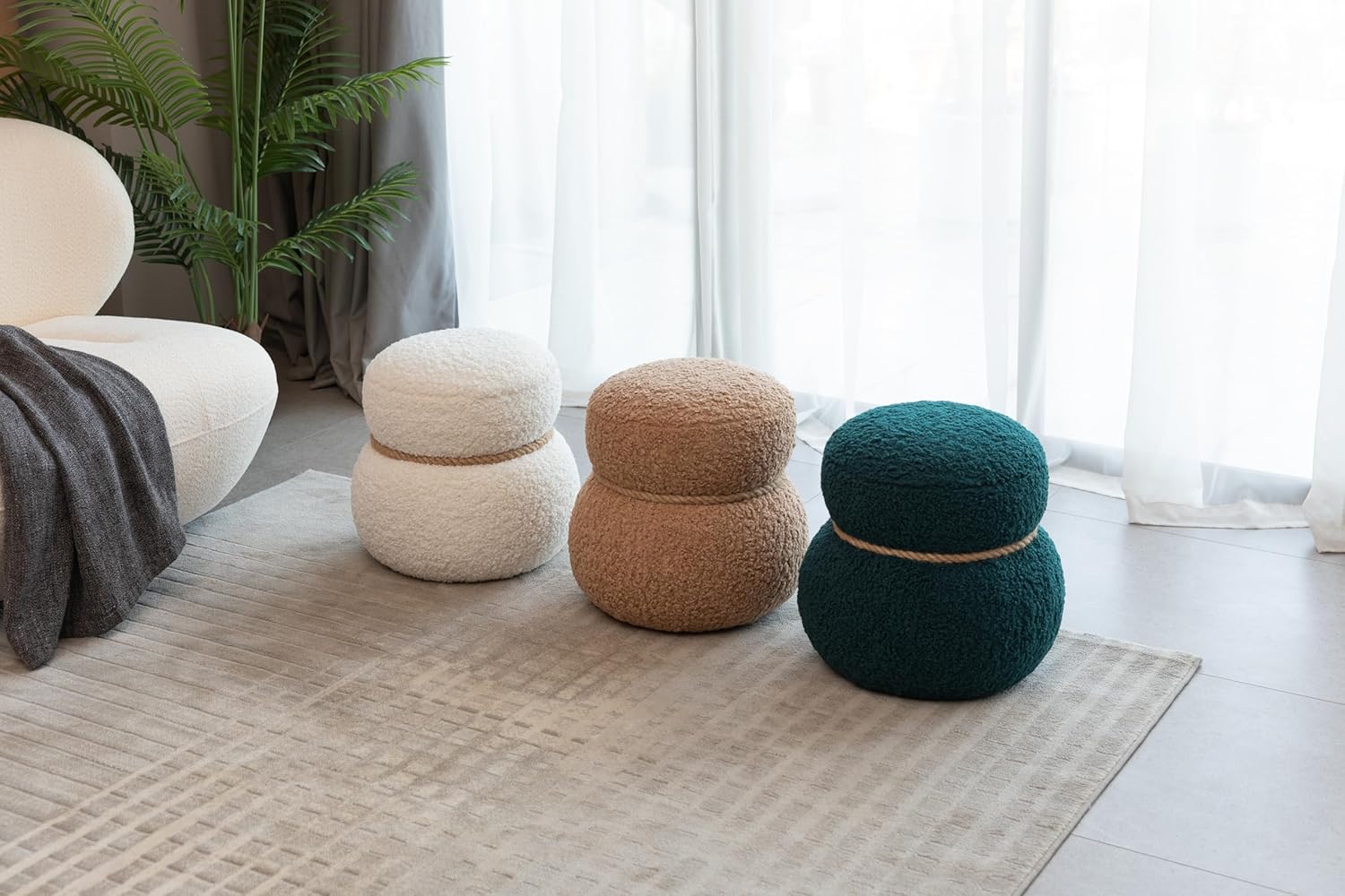 MEETAKING Small Round Foot Stool, Teddy Fabric Footrest Ottoman Stool with Non-Skid Legs, Modern Footstools Step for Couch, Desk, Office, Living Room (Green)