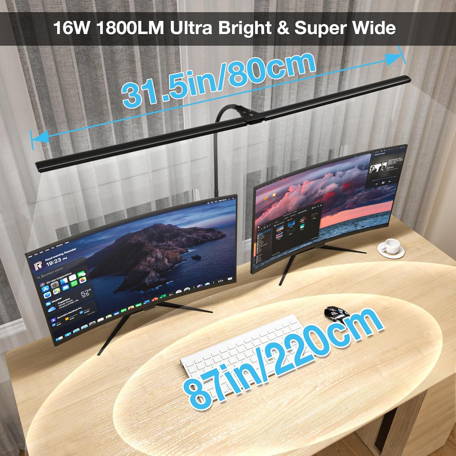 Desk Lamp for Office Home, 31.5" Desktop Lighting Bar with Gooseneck, Clip on Desk Light with Clamp, Bright Dimmable Table Lamp for Study, Work, Computer, Monitor, Reading