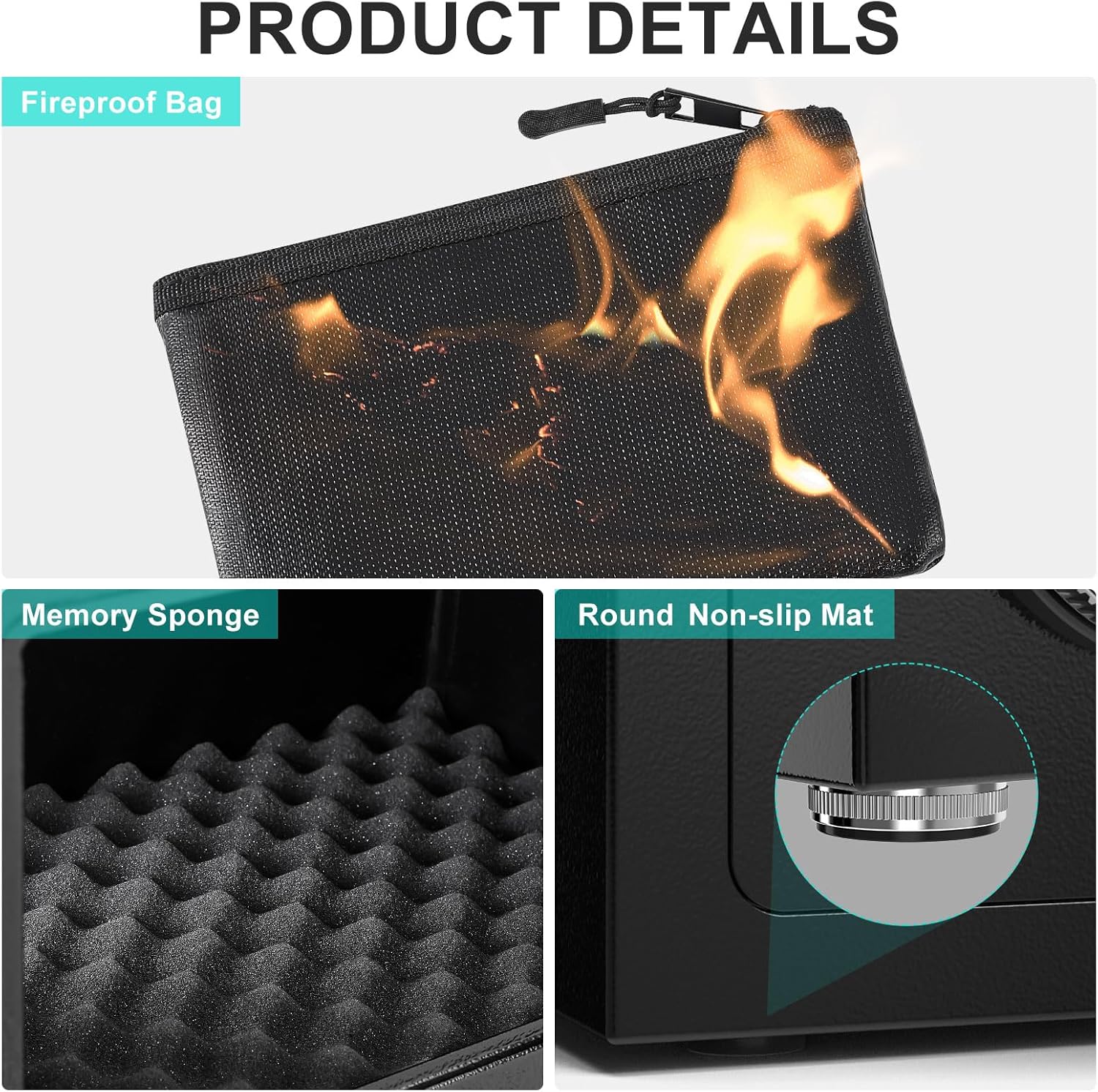 BONANO Small Safe, 0.5 Cubic Safe Box with Electronic Keypad and Fireproof Waterproof Bag, Small Safety Box for Money Cash Valuables, Dual Alarm System, Safes for Home Hotel Office