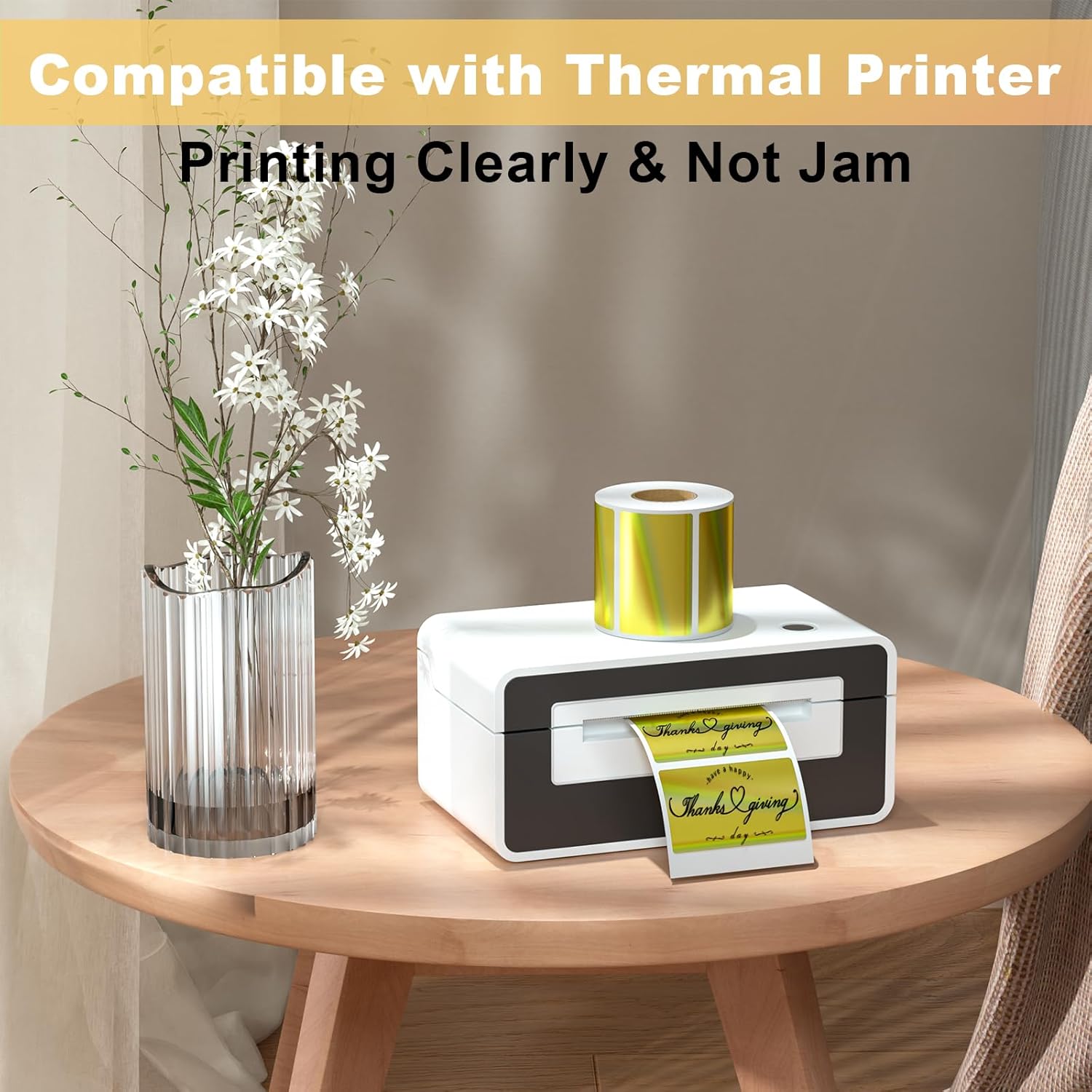 - 【Specifications】Gold Holographic thermal stickers labels, 2.25”x1.25” rectangle, 400 labels per roll