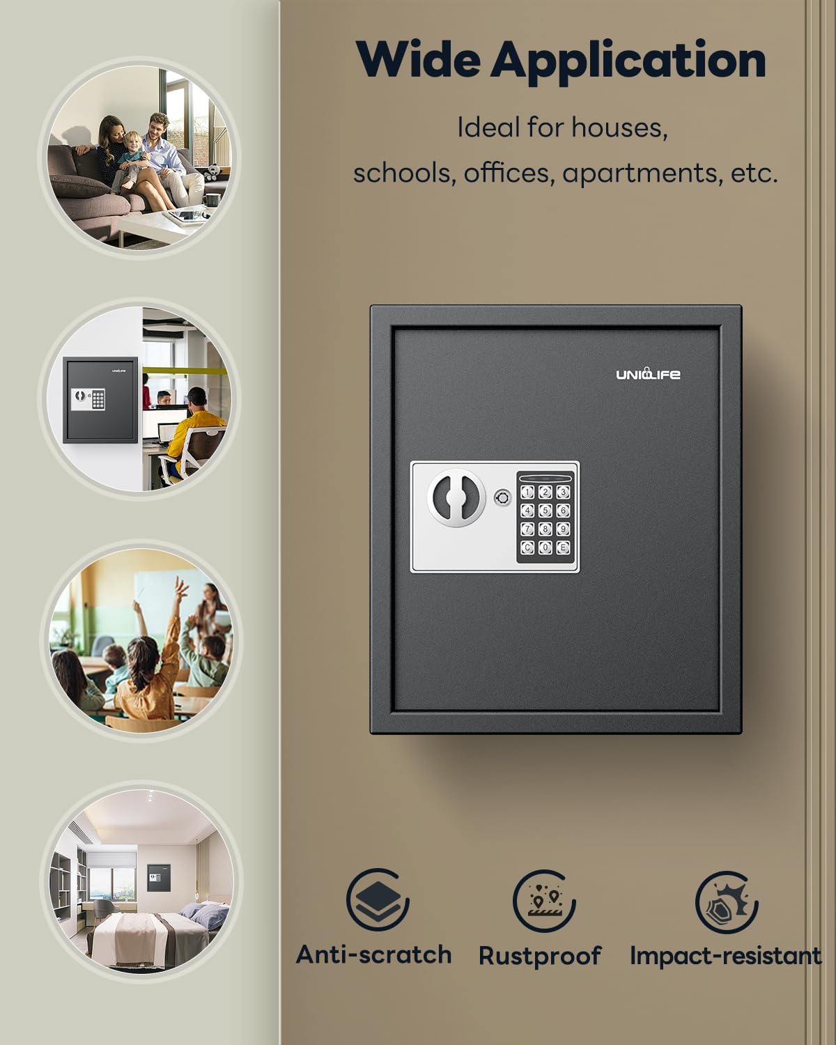 Uniclife 70 Position Key Cabinet with Combination & Key Lock Wall Mounted Security Keys Safe Key Organizer Resettable Black Digital with Keypad Lock Adjustable Racks Colorful Key Tags & Permanent Pen