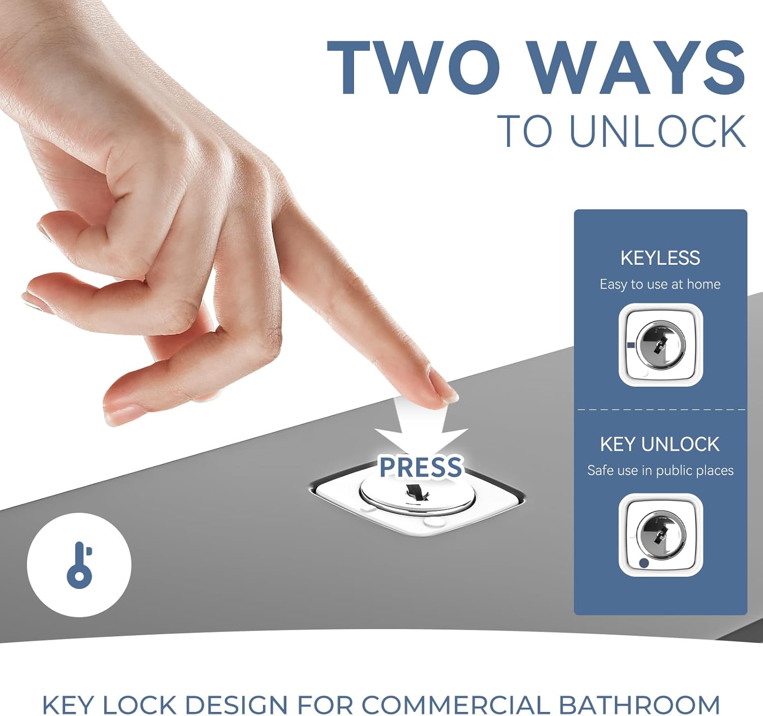 - 【TWO LOCKING DESIGN】 This wall mounted paper towel holder can be pressed to unlock, suitable for home kitchen or bathroom. It can also be locked with a key, suitable for commercial public places.