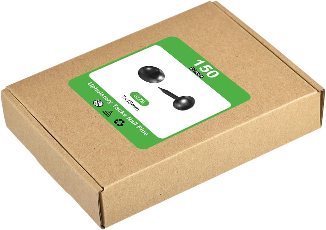 - Specifications: Material: Carbon steel; Color: Black; Diameter of nails head: 7mm/0.28inch; Shank length: 13mm/0.512inch; Package Content: 100Pcs x Upholstery Tacks Nail Pins