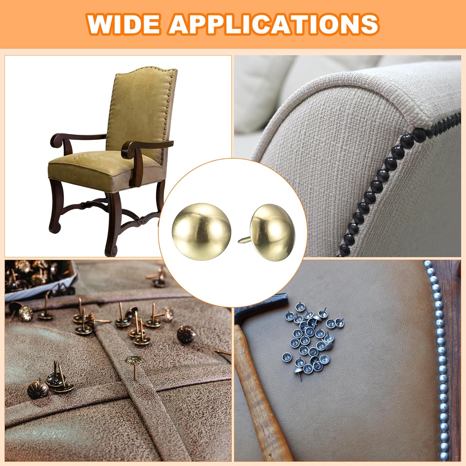 - Material: These furniture upholstery tacks are made of metal and have an electroplated finish. They are smooth to the touch, sturdy, and free of burrs, making them suitable for decorative use in homes.