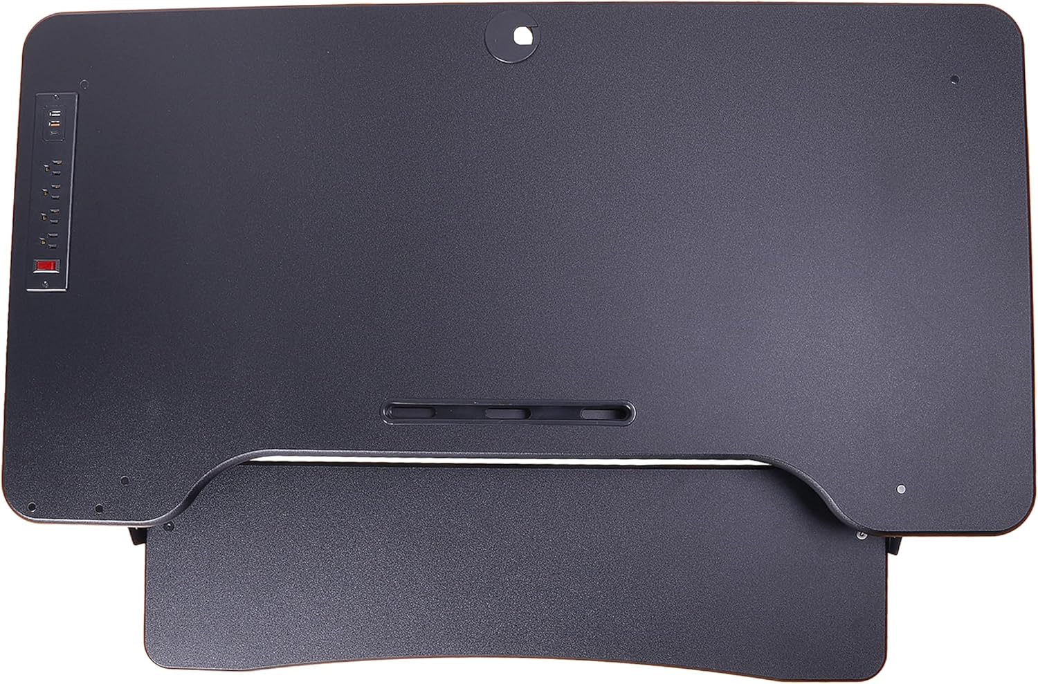Rocelco 46" Electric Standing Desk Converter with AC Outlet USB Charger and Dual Monitor Arm Mount - Motorized Adjustable Sit Stand Riser - Tabletop Workstation Keyboard Tray - Black (R EDRB-46-MA2)