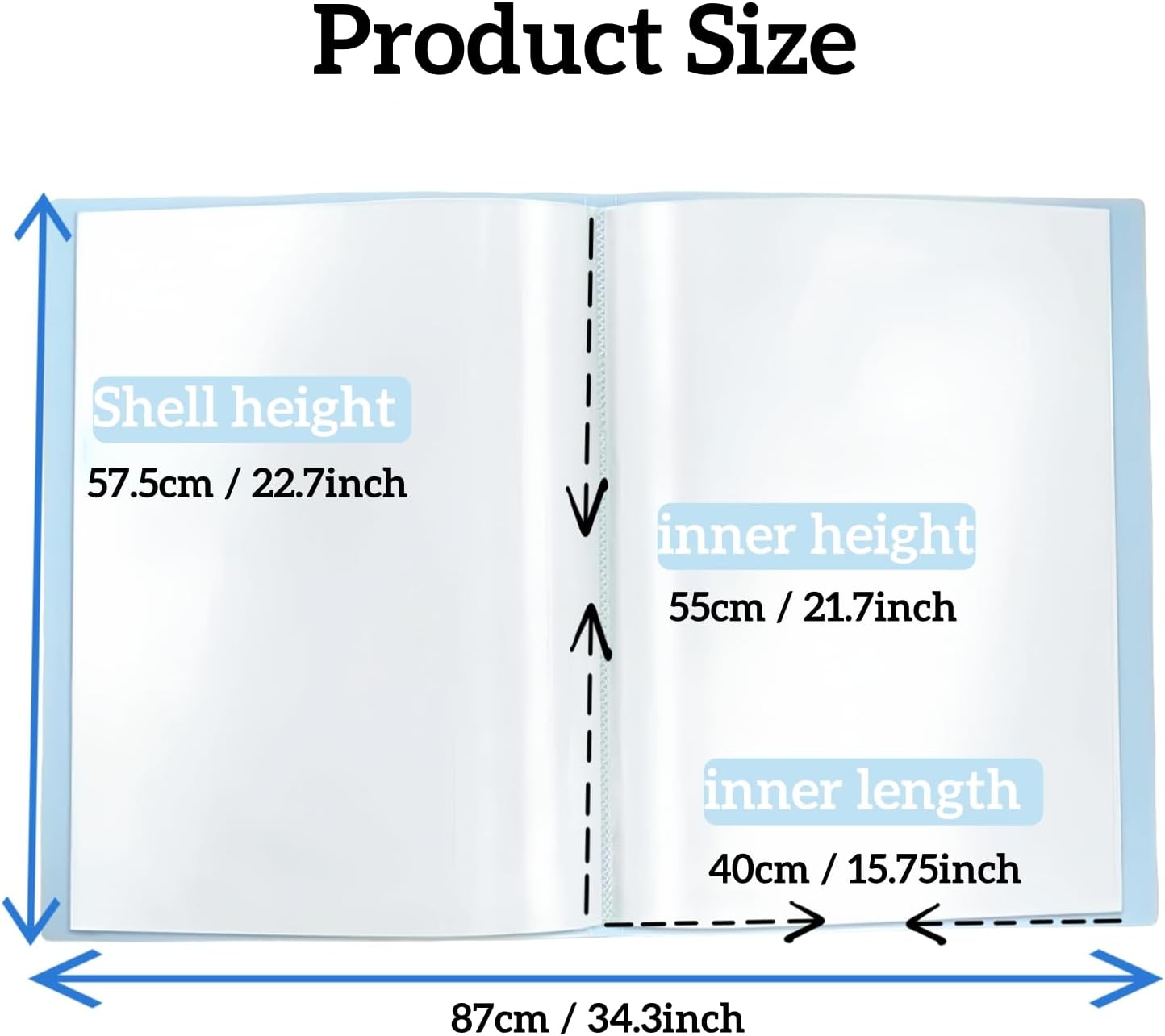 - Diamond Painting Storage Book: Inner Sleeve size measures A2: 55x40cm, The presentation book works perfect for standard 22x15 inch diamond paintings.