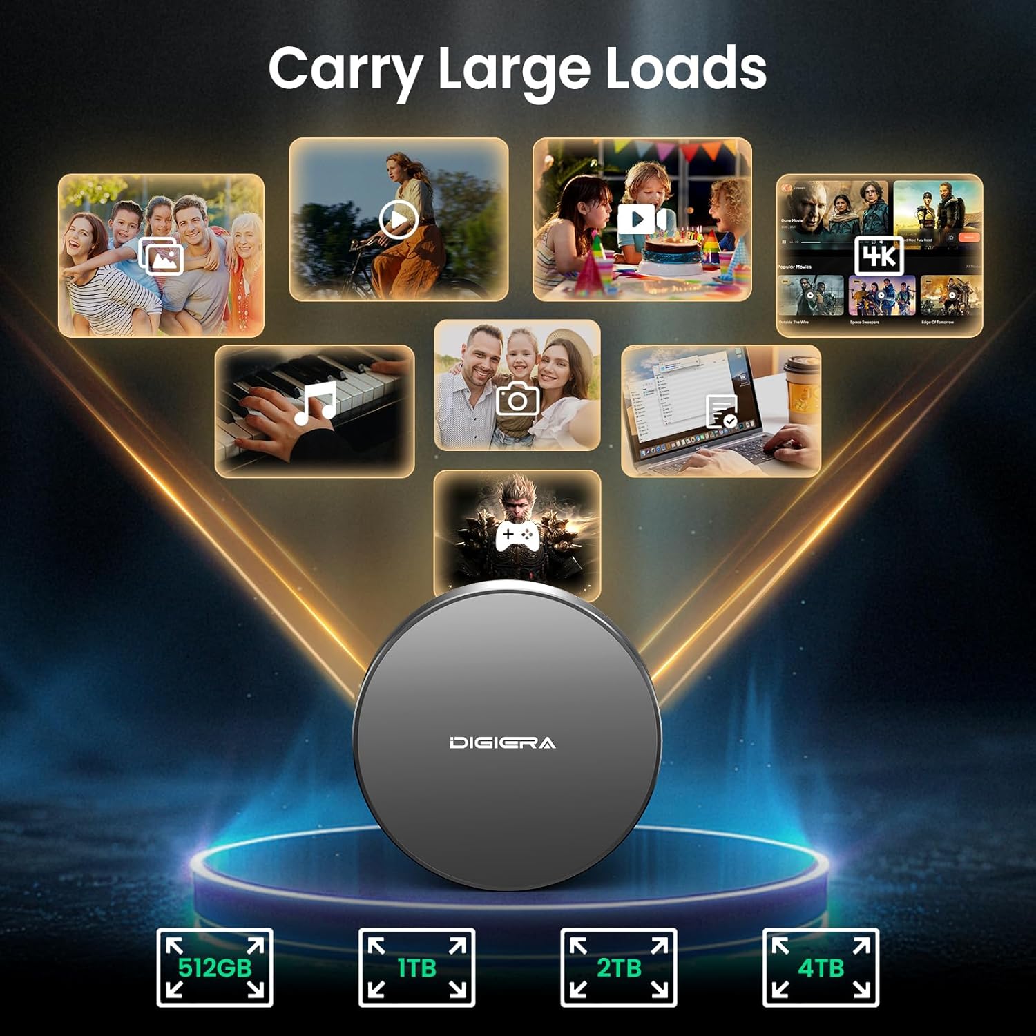 - Ample Storage to Shoot and Store More: This external solid state drive is available in 512GB, 1TB, 2TB, and 4TB capacities, giving you the space to store more of what matters most: family photo albums, favorite movies, thrilling games, and all the music you rock to. It’s perfect for those balancing work, creative projects, and leisure