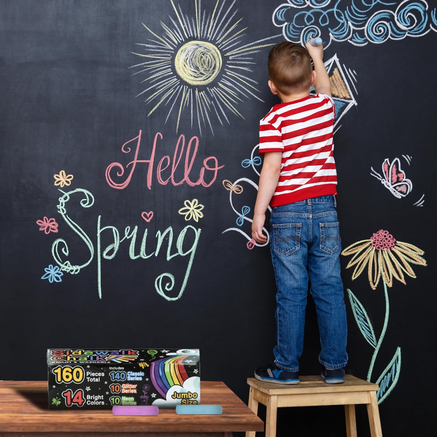 - Vibrant Color Variety: Unleash creativity with 160 jumbo sidewalk chalk pieces in 14 vivid colors, including 10 neon & 10 glitter for a magical touch on sidewalks, streets, driveways, playgrounds, and chalkboards.