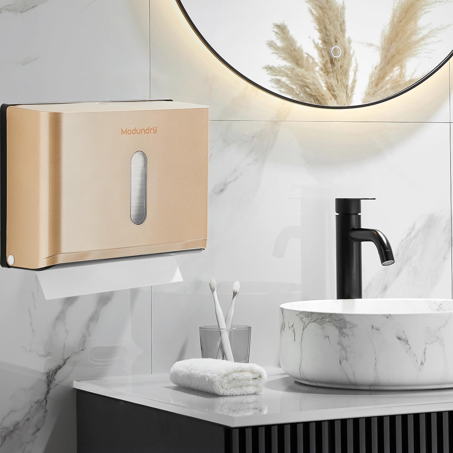 Paper Towel Dispensers Wall Mount: Multifold Z-Fold Paper Towel Holder, No Drilling Install, Compact Hand Towel Dispenser for Home Bathroom, Restroom, Office, Gold