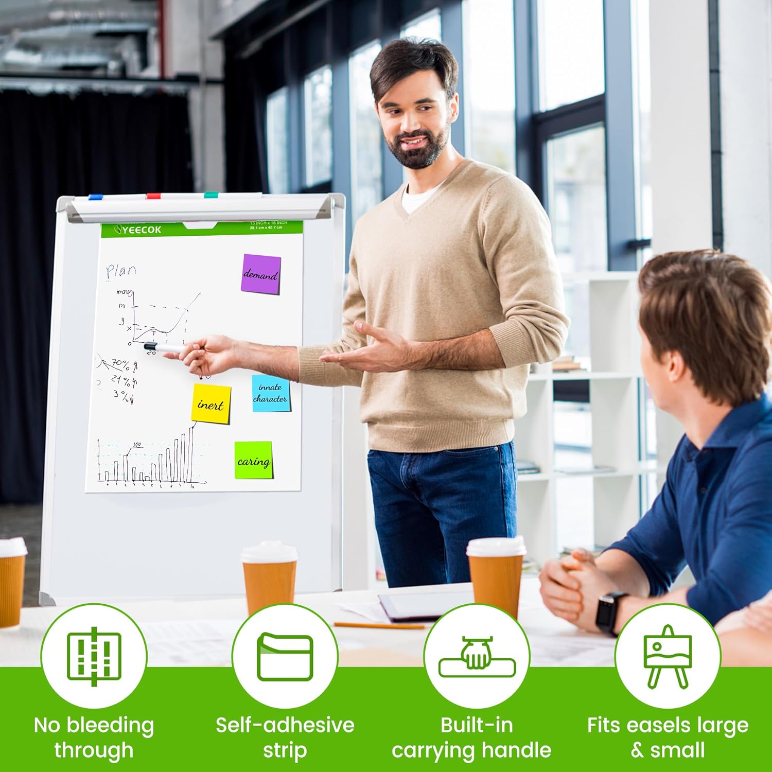 - 【Mini Premium Chart Paper】YEECOK flip chart paper is 15 in x 18 in, 30 Sheets/Pad, 4 Pads/Pack, Perfect for Classroom and Meeting room alike.